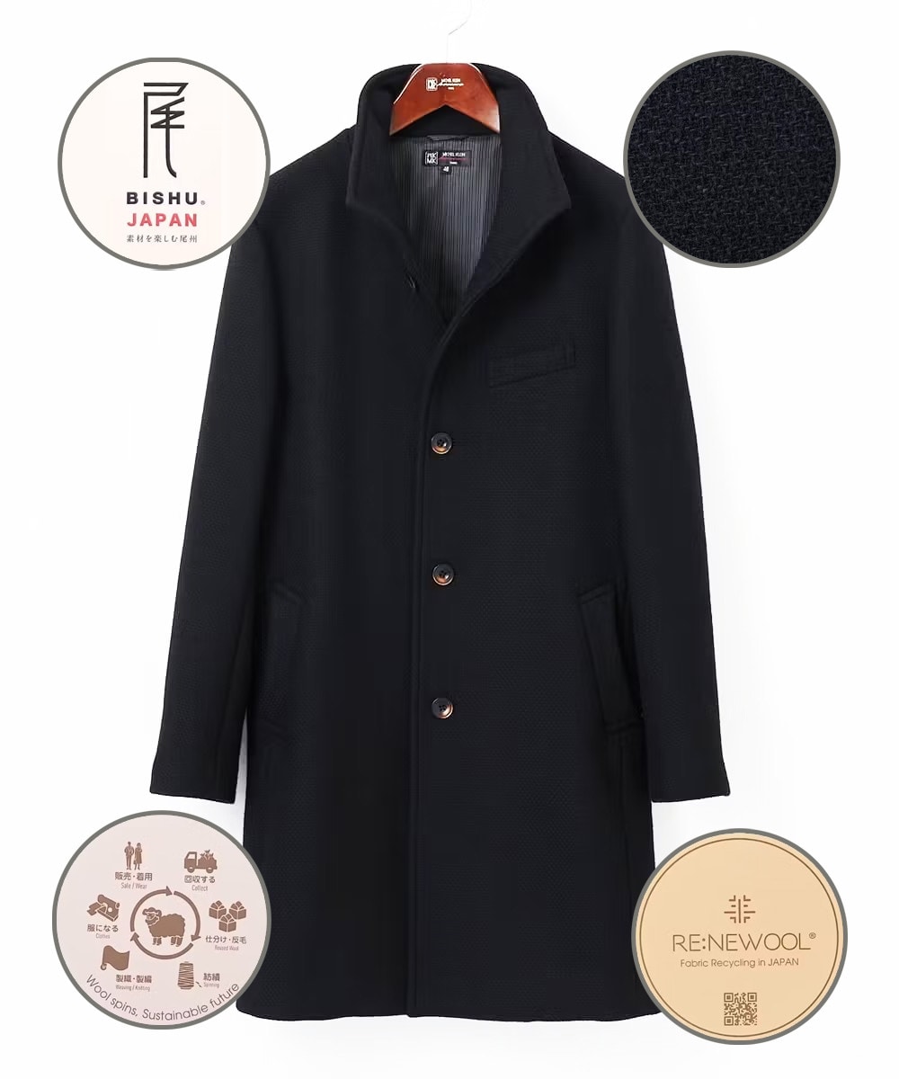 【大人の杢柄コート】RENEWOOLドビー / スタンドカラーコート