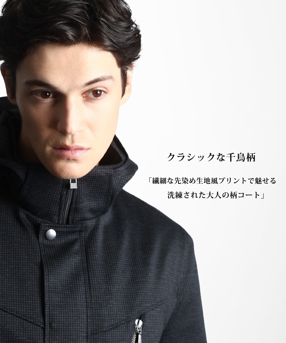 【大人の杢柄コート】フード付きコート / 千鳥柄