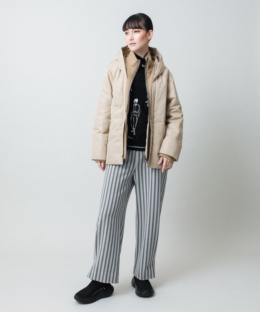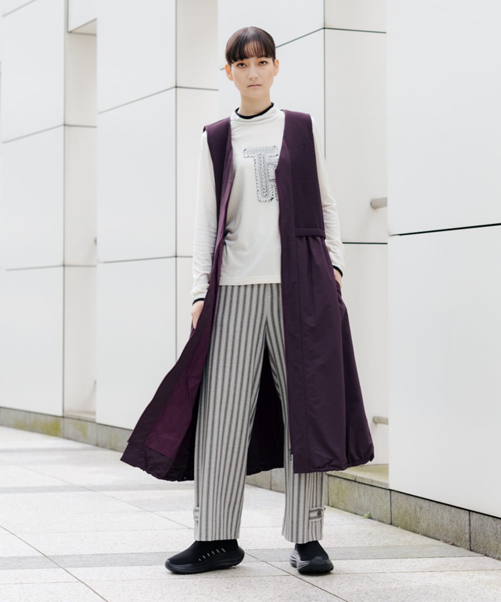 裾に向かって広がるシルエットで、ワイドパンツとの相性も抜群。