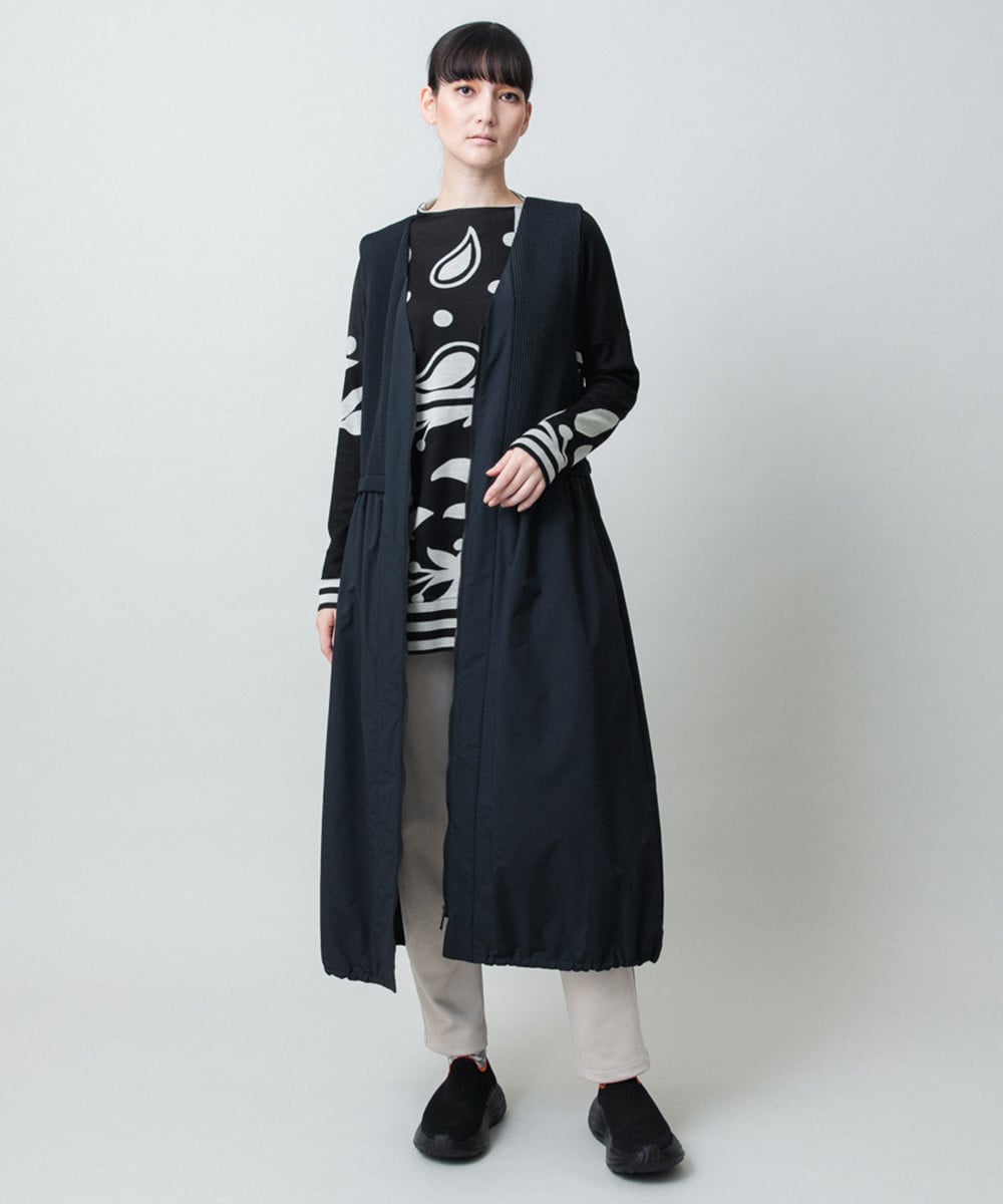 フロントのジップを開ければコートとして、閉めればニットとしてもスタイリングを格上げ。