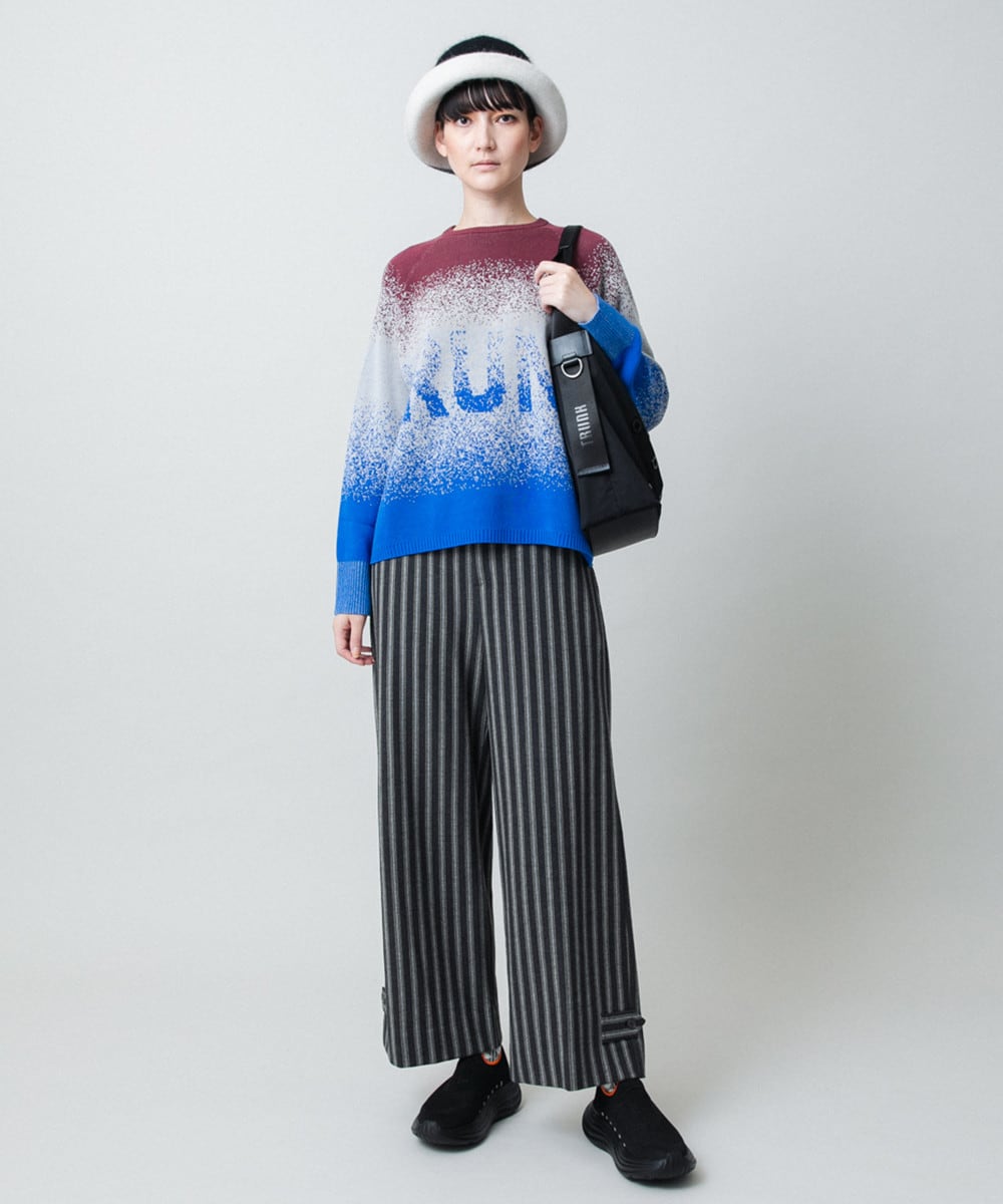 グラデーションロゴジャカードニットプルオーバー/洗える