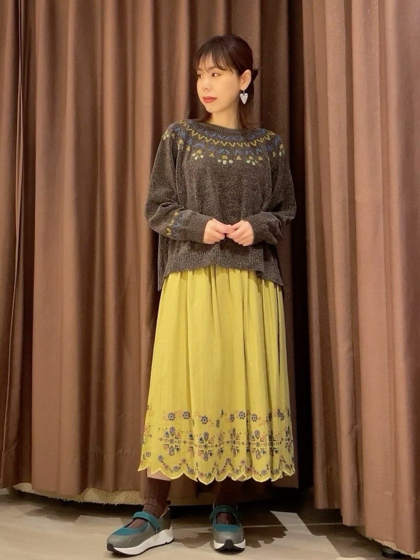 トップスとスカートに刺繍が入ったレトロな冬コーデ!
