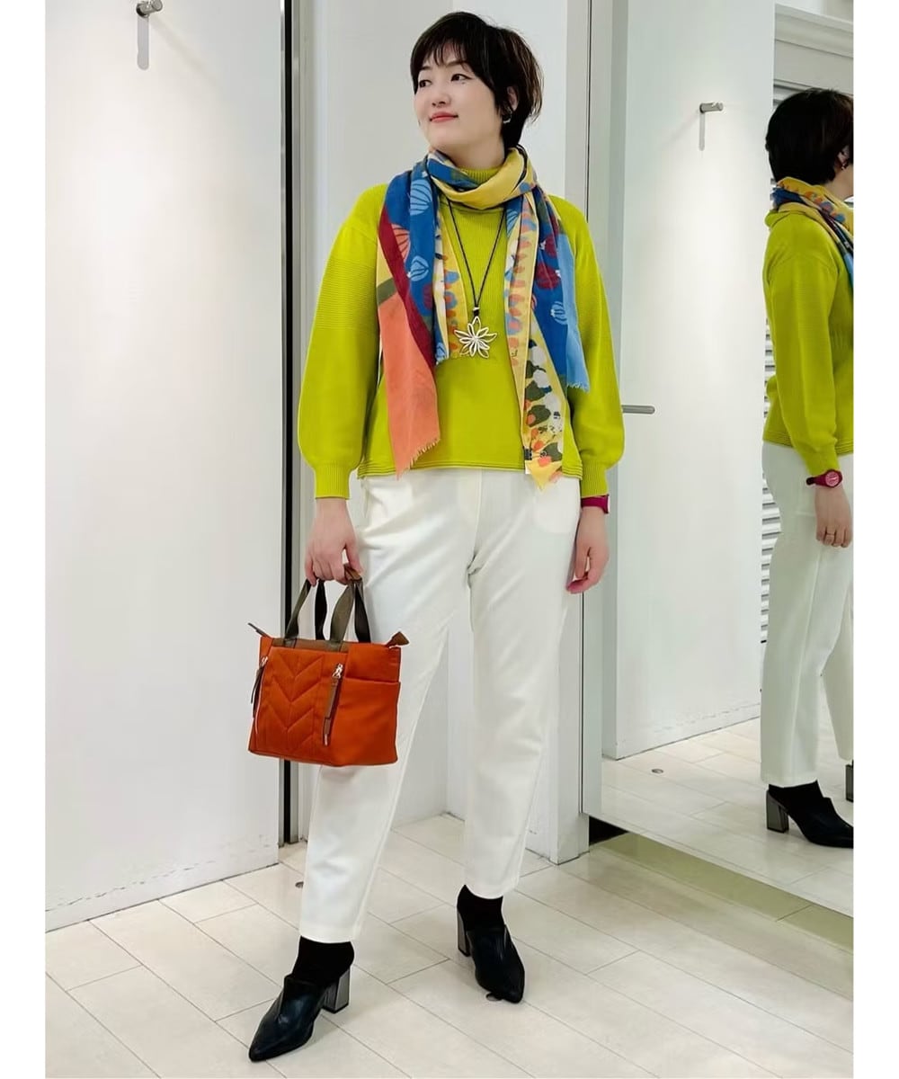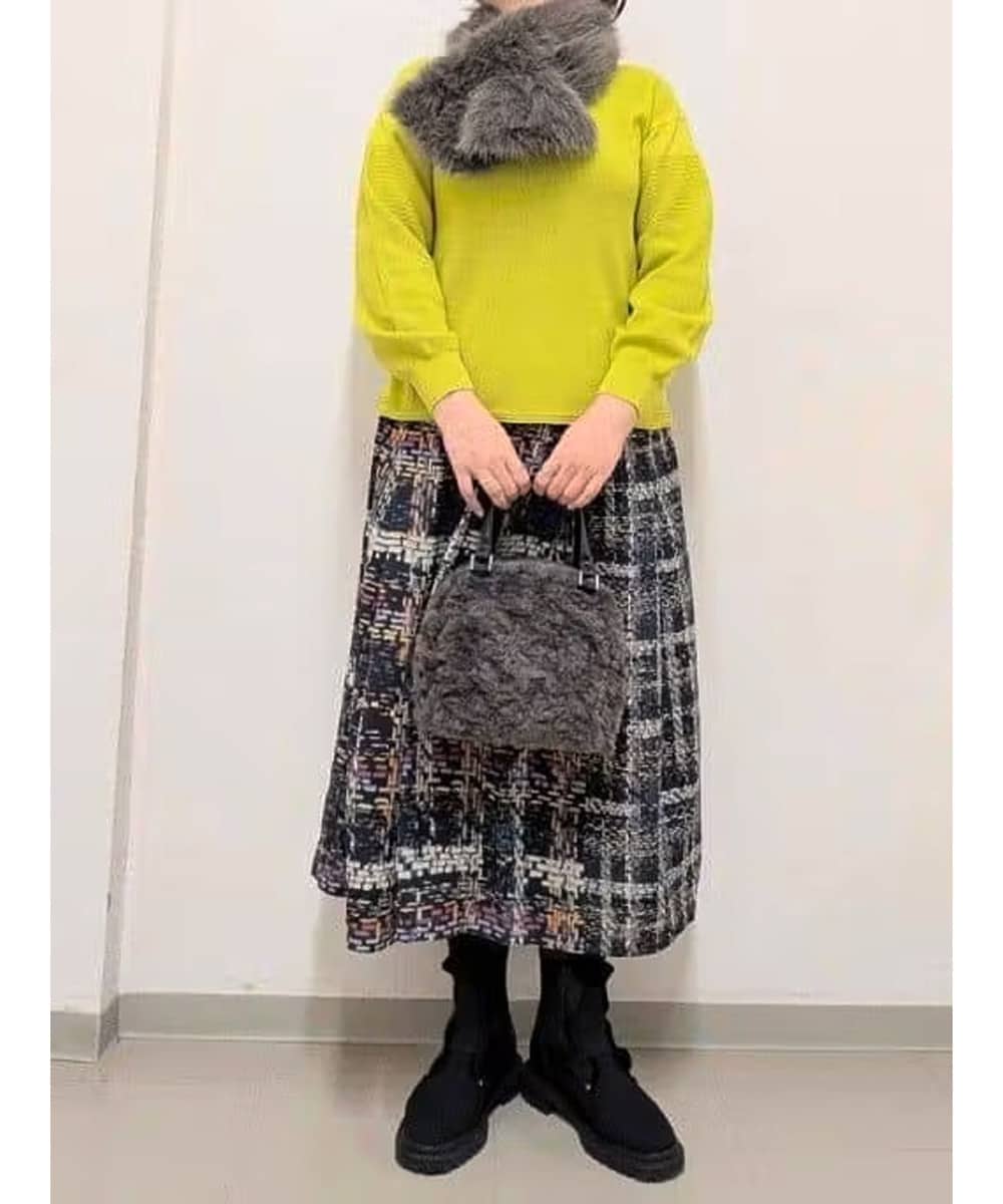 暗くなりがちな秋冬コーデに華を添えてくれるイエローのニットは、下に向かって緩やかに広がるシルエット。