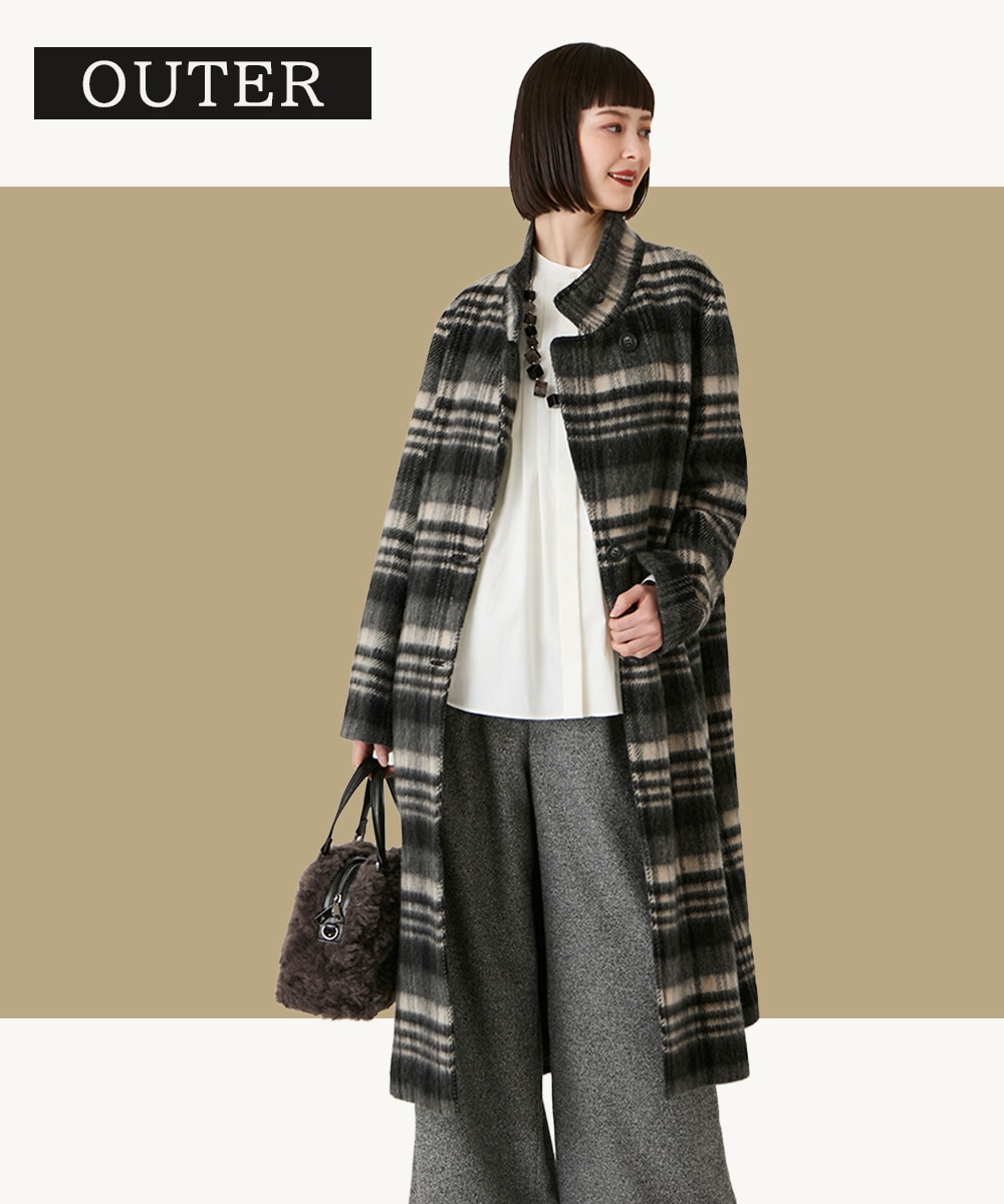 落ち着いた深みのある色味や派手すぎないチェック柄がより一層上品に魅せる一枚