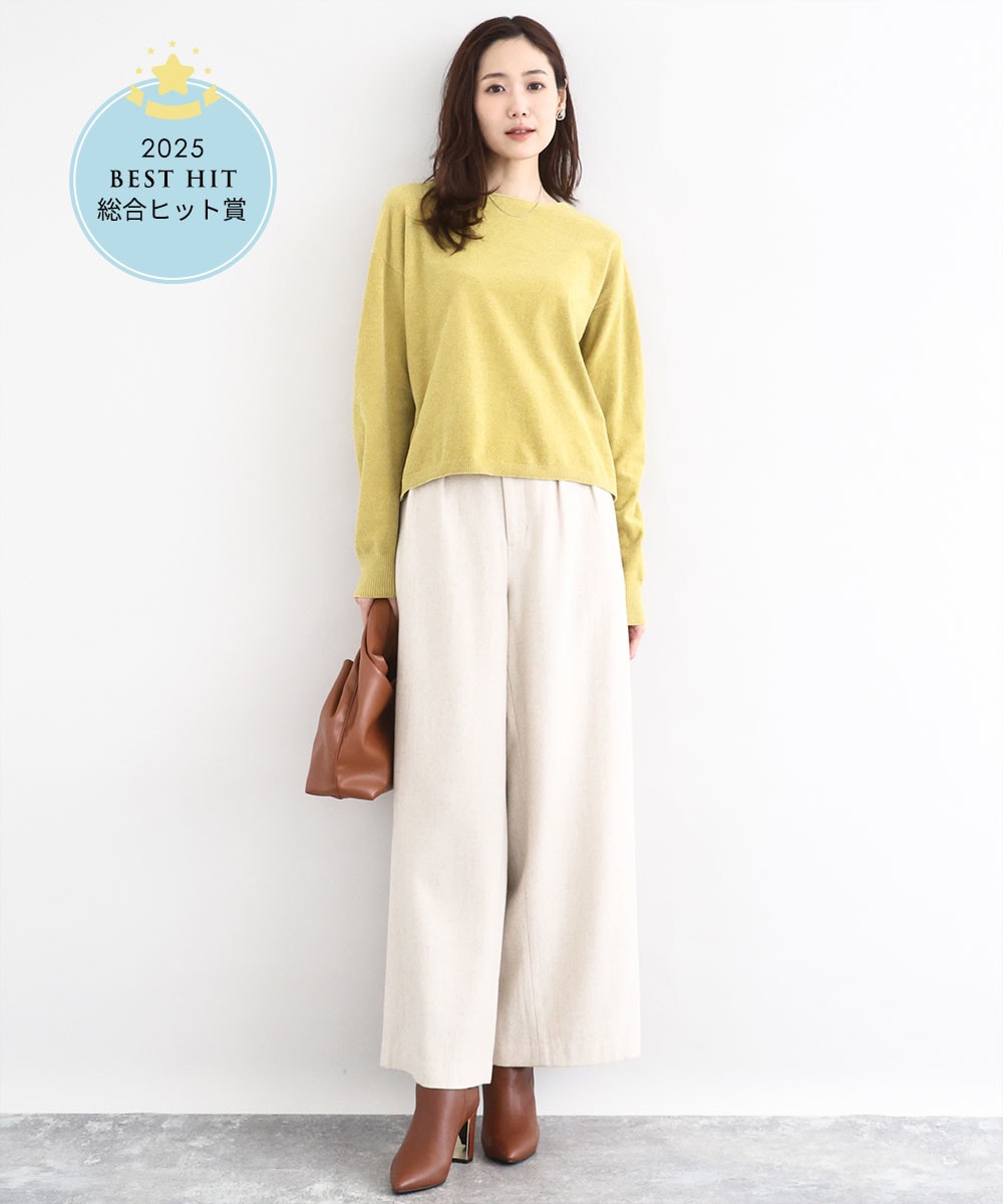 モールヤーンのやわらかで優しい印象が冬の季節にぴったりなニットもとても大人気でした。パンツにもスカートにも、ボトムにインせずにさらっと着こなしやすい着丈は着回し力も抜群。人気ニットはさらにウィンターパステルな冬の明るい色の新色を加え、全8色でご用意しています。