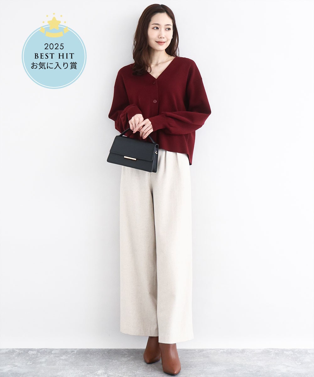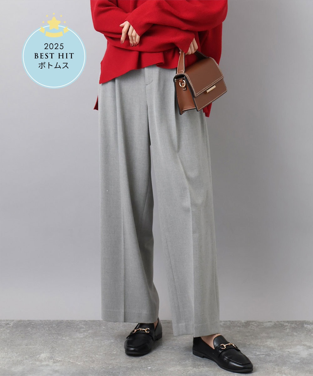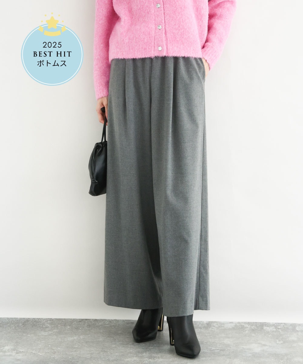 ツイード調の見た目にもしっかりと暖かいワイドパンツは、毎回人気のMKの名品アイテムのひとつ。シンプルなデザインだからこそ、合わせ方次第で、シーンを選ばず着こなせます。シワにもなりにくいデザインはご旅行などにもおすすめです。