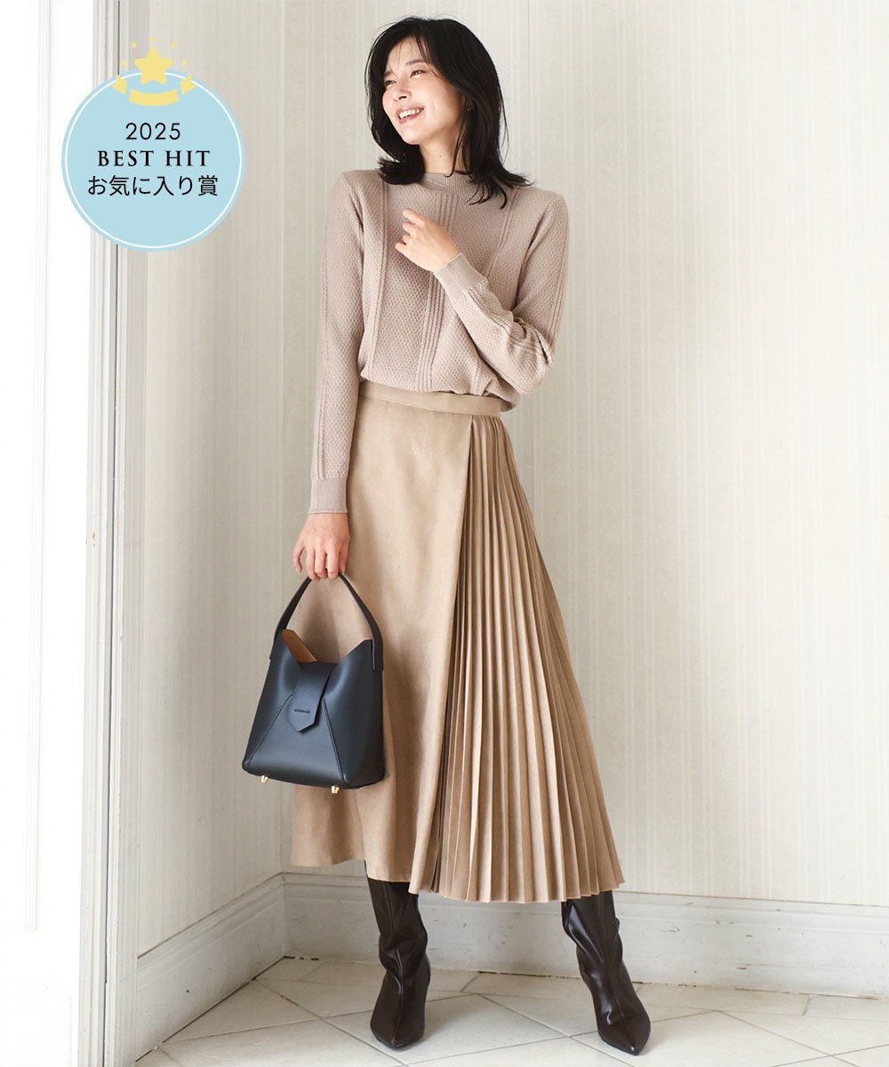動きに合わせて揺れるプリーツが大人可愛いスカートは、これからの季節にも嬉しい起毛感のあるスウェードライクな素材を使用。