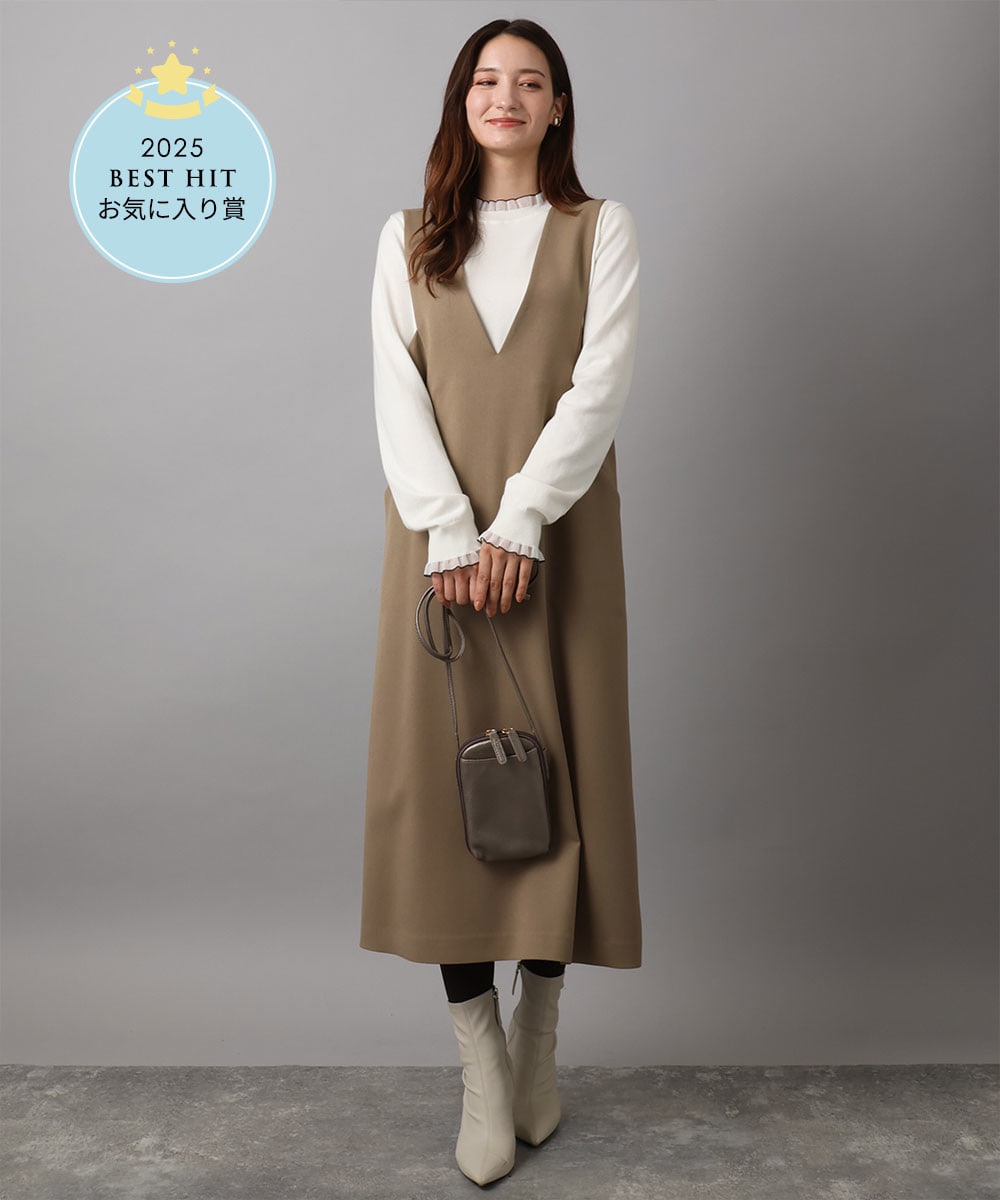 インナー次第で雰囲気を変えて着こなせるジャンスカもお気に入り登録数の多い人気アイテム。アームの開きが広めのデザインはインナーの袖デザインを選ばず、ブラウスからニットまで幅広いトップスと好相性。