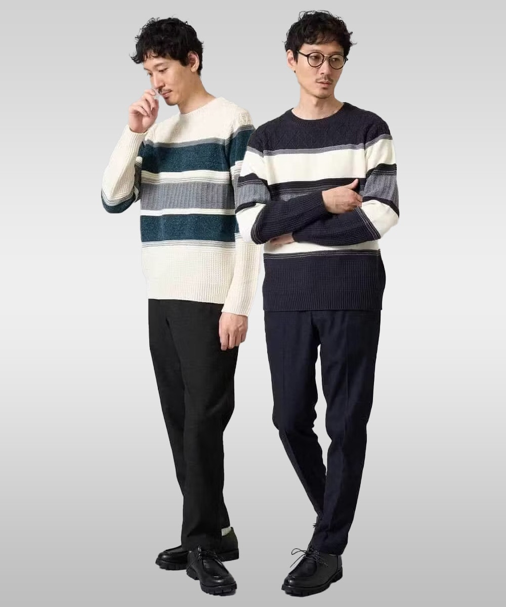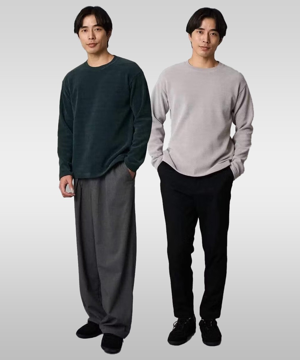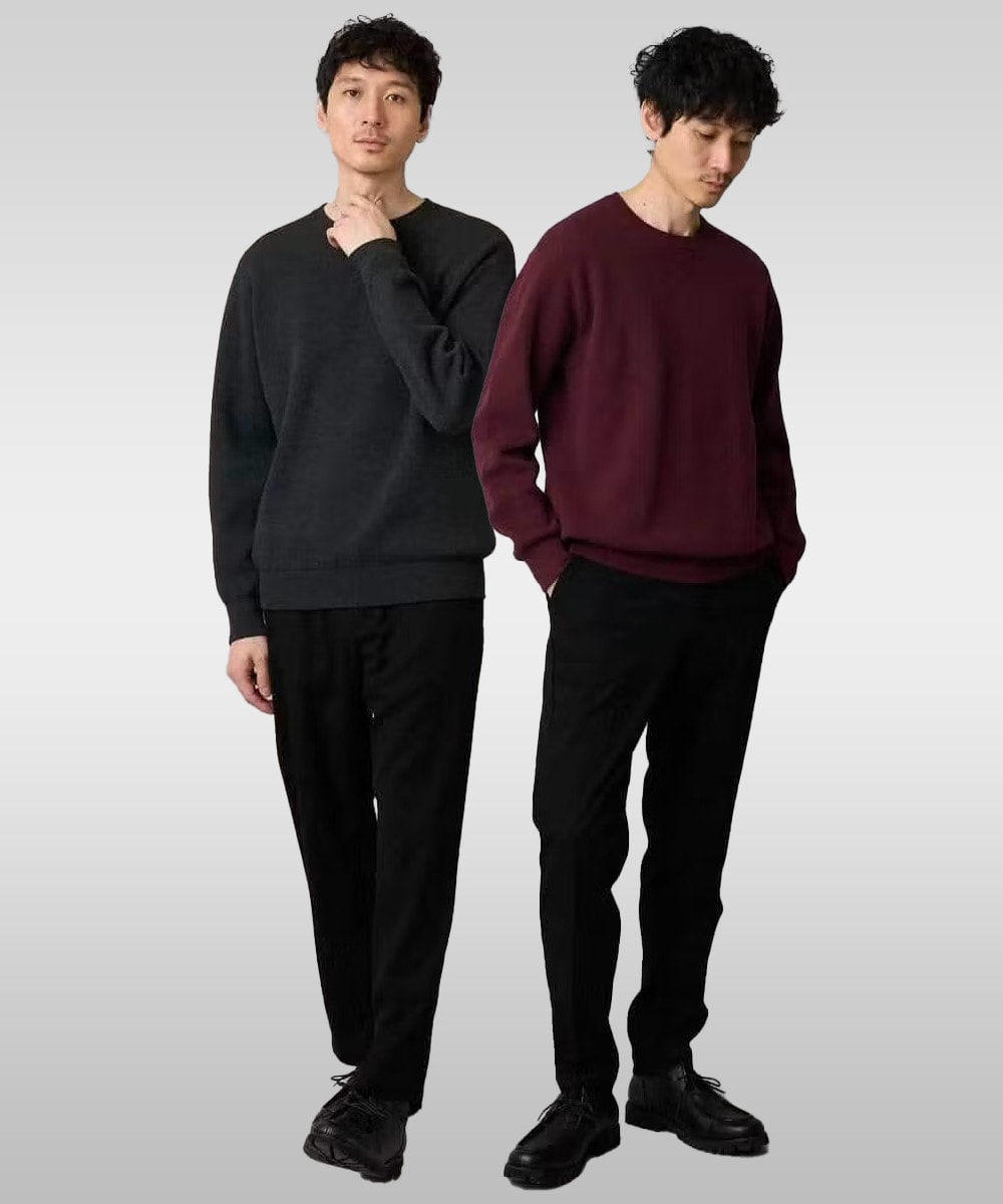 上記でご紹介のモックネックやVネックともぜひご一緒に!