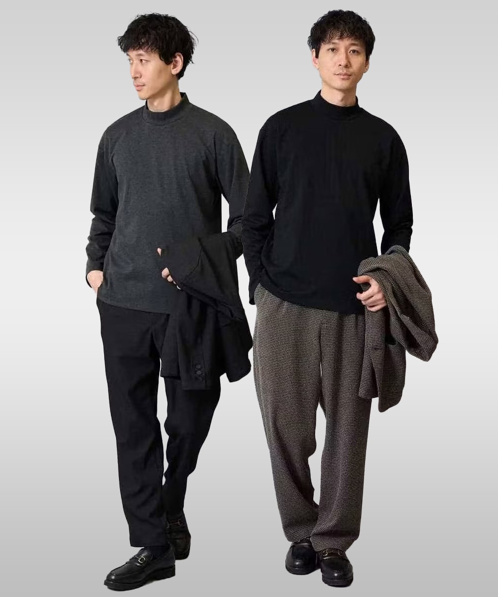年々人気を増しているモックネックタイプは、複数枚持っておきたい所。
