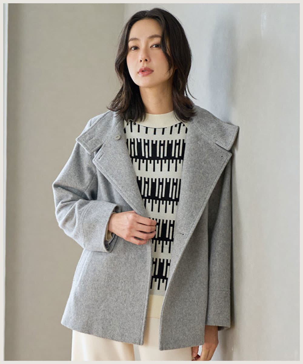 ・毎年人気のウールコートをサイズが大きいというお声があり、今回は前後ともにセットインスリーブにしてすっきりサイズに羽織りやすくアップデートしております。