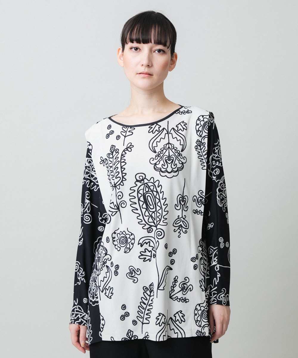 ボタニカルプリントチュニック丈ブラウス