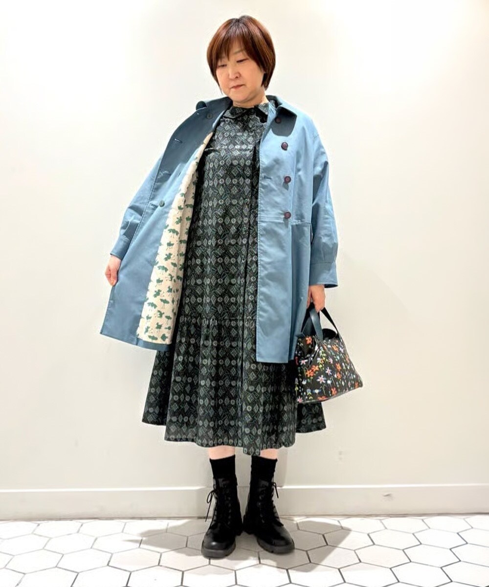 春らしい水色のコートと柄ワンピースを合わせた華やかなコーデ。コートは軽くて着心地が良く、ワンピースとの相性も抜群です。着丈が長めのワンピースは高身長の方にもオススメ◎花柄のバッグでより華やかな印象を後押しします。