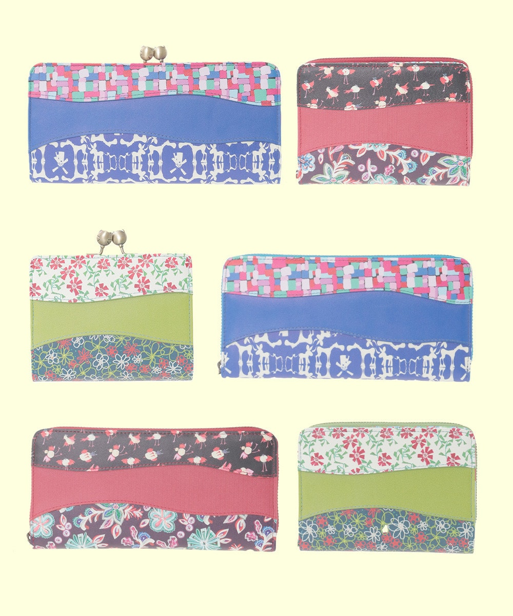 カバンからちらりと覗くたびに気分が上がる、華やかなプリントのお財布。前後で異なる柄もポイントです!
