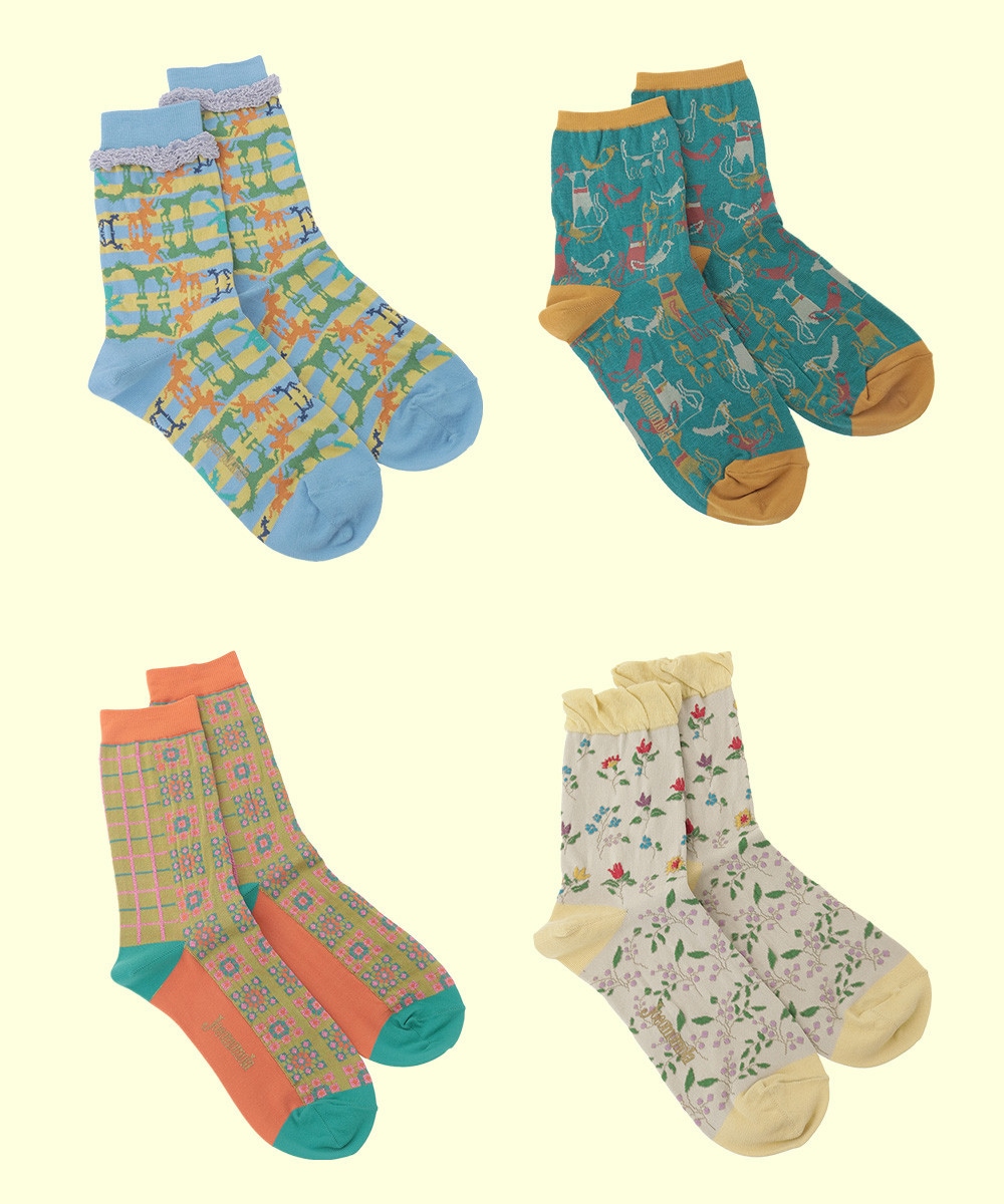 どんなコーディネートに合わせるか考えるのも楽しいカラフルなソックス。普段柄のお洋服を着ない方にも取り入れやすく、プレゼントにもオススメです。