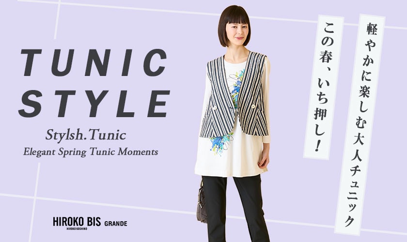 ヒロコビスグランデの軽やかなシルエットで、毎日を上品に演出するスタイリングをご覧ください。