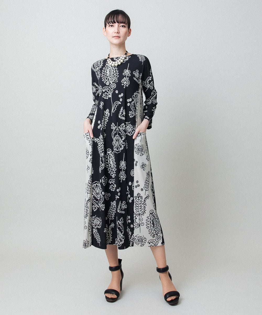 ボタニカルプリントサイドポケットワンピース /日本製/洗える