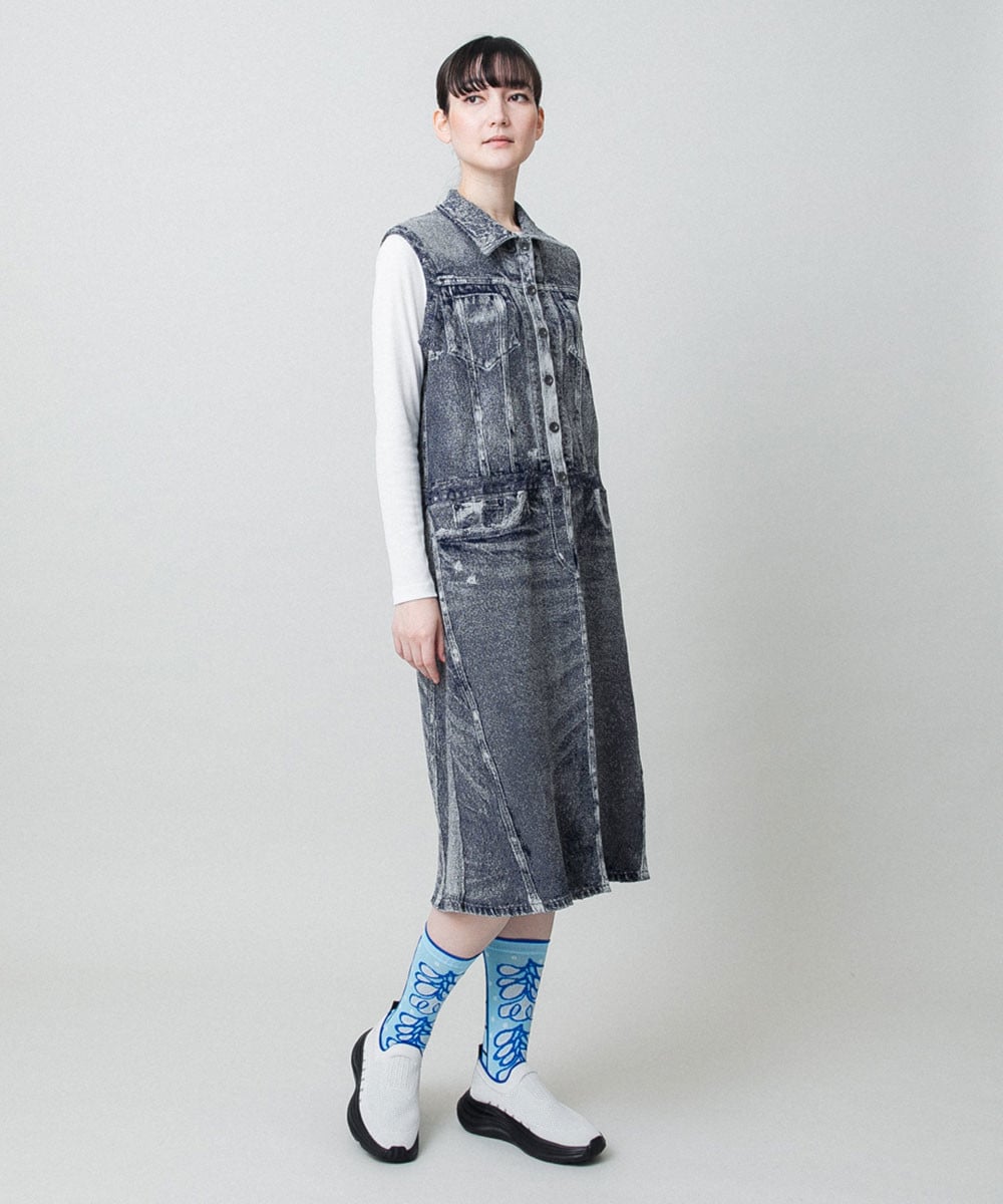 立体ストレッチデニムワンピース /日本製/洗える