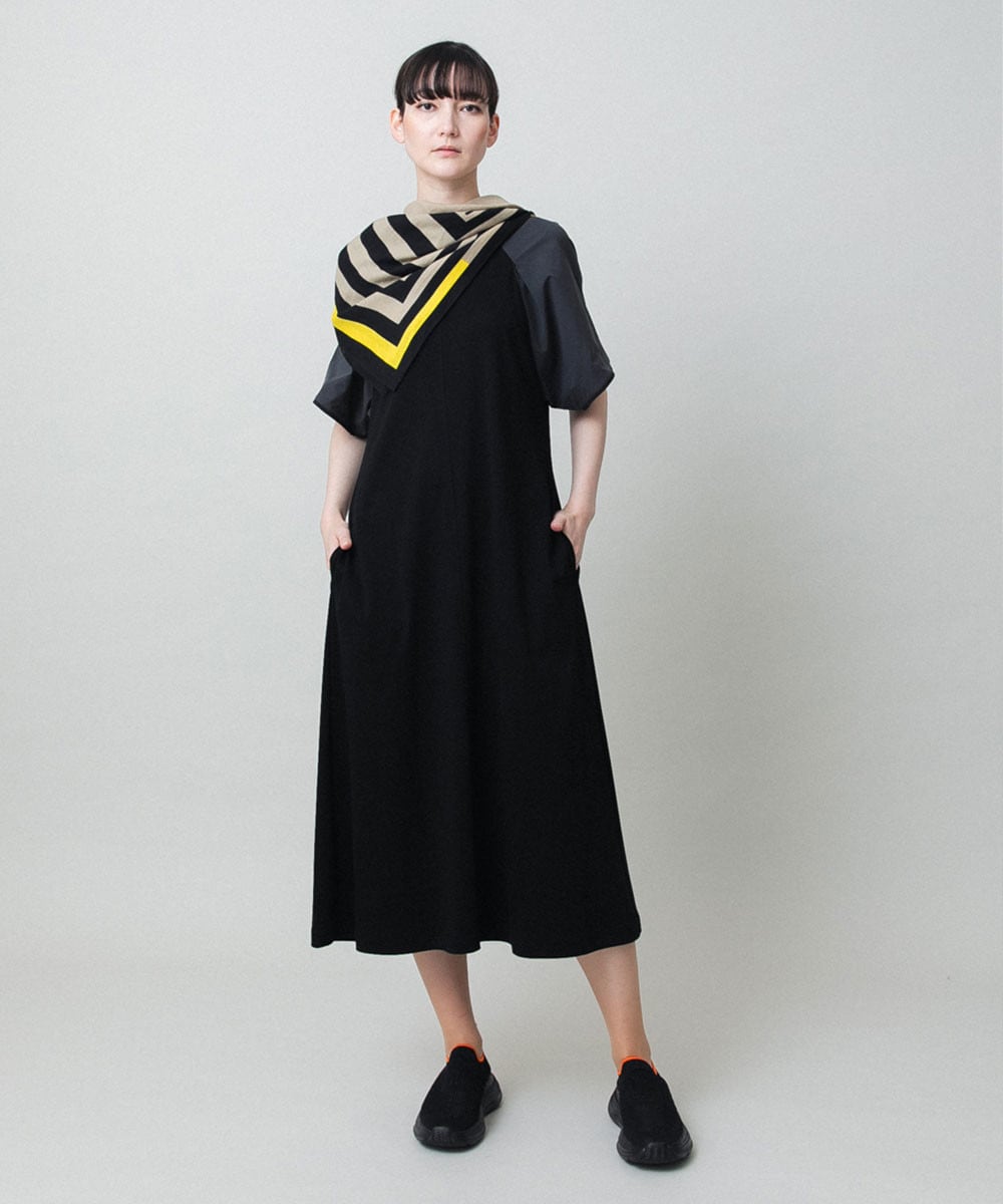 日常にさりげないモード感を添えるドッキングワンピース。