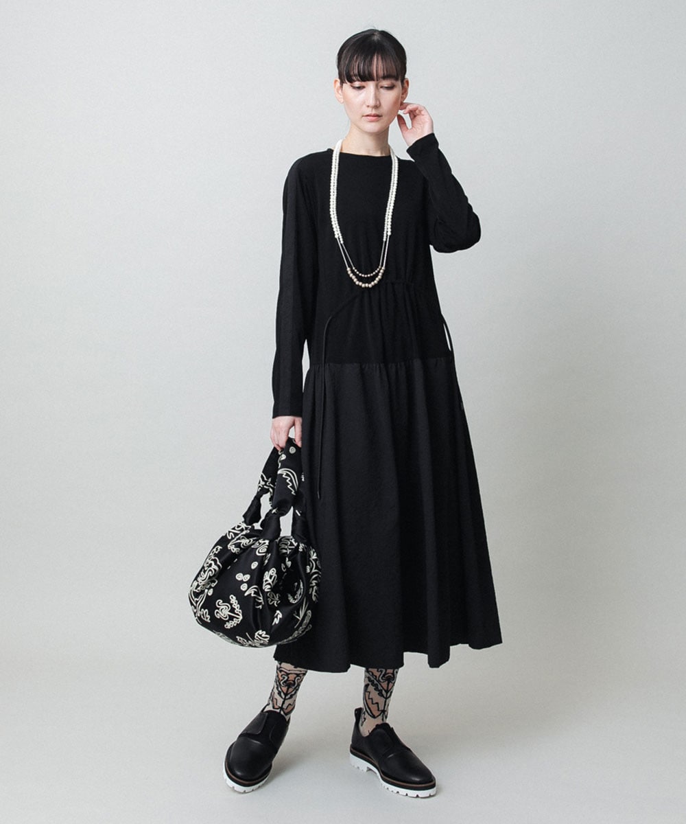 異素材ドッキングワンピース/日本製/洗える