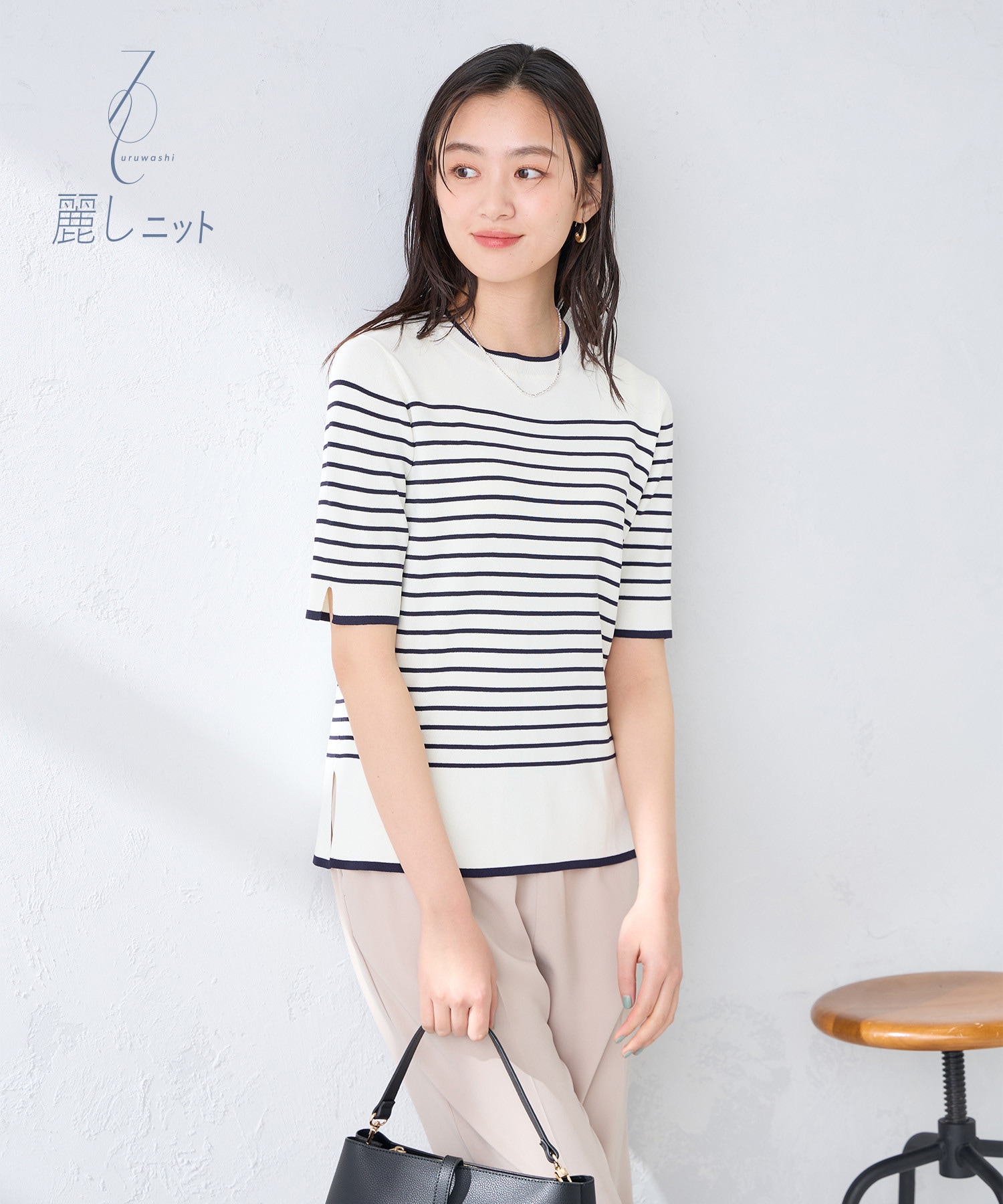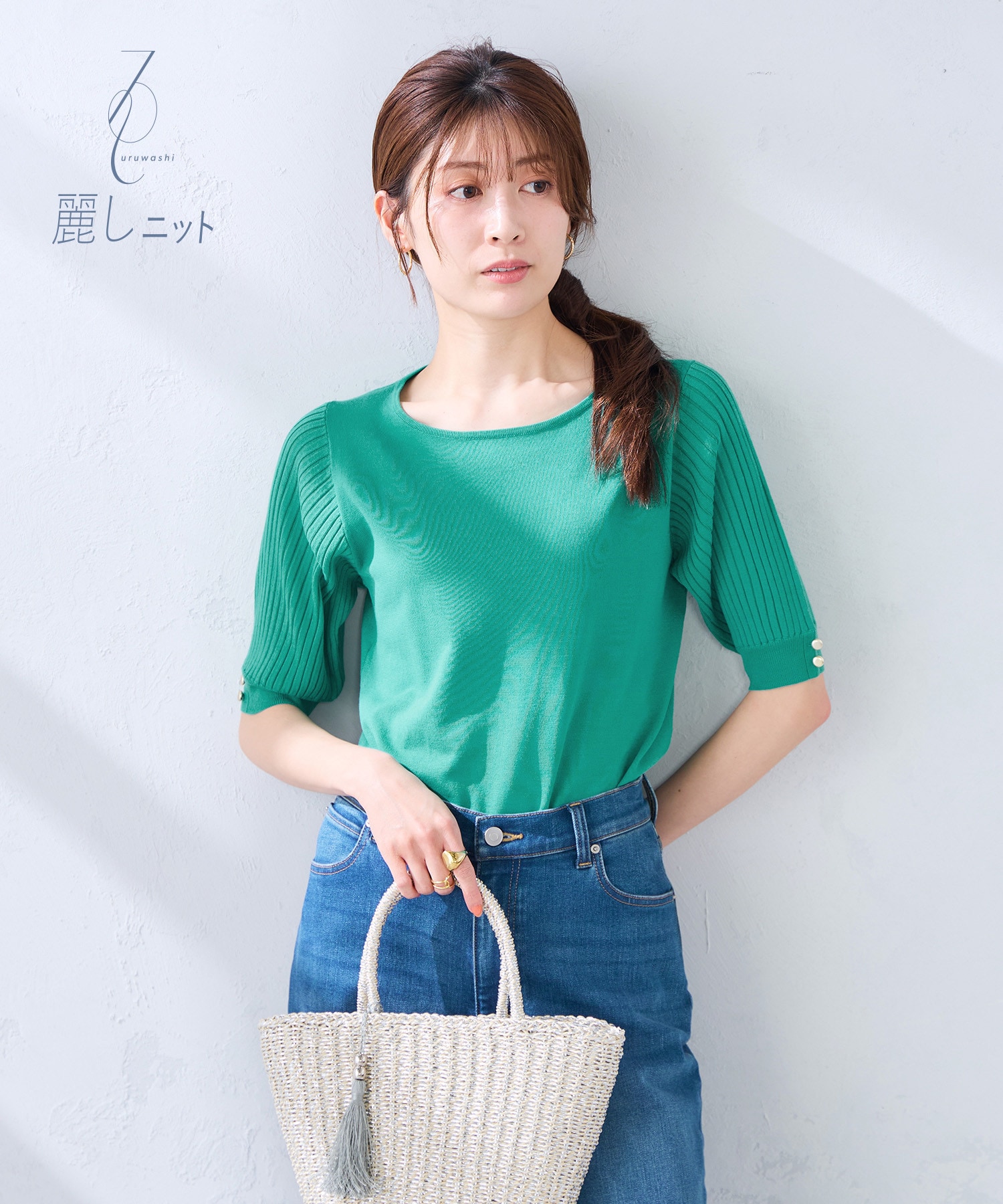 お仕事シーンではジャケットレスでもきちんと決まり、休日シーンではカジュアルスタイルを上品に格上げしてくれるサマーニット。