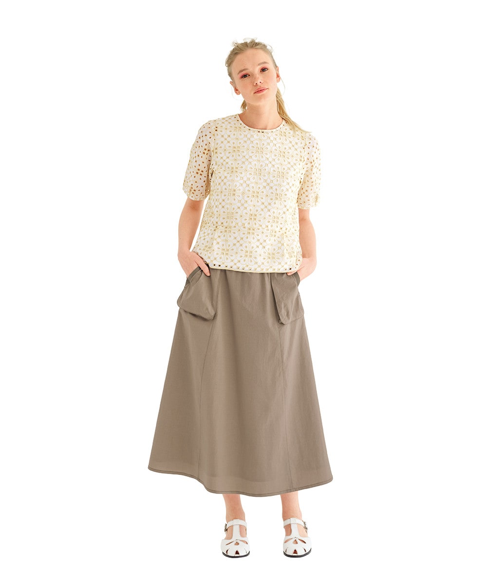 レーシーブラウスが主役の大人の上品カジュアル。 ナチュラルなワントーンでこなれたムードに。