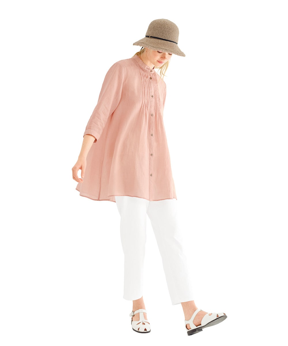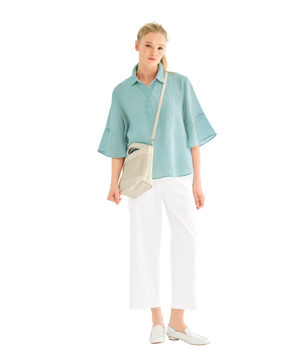 ナチュラルな風合いを生かしたフレアースリーブが効いた、 切れ味のいいリネンシャツ。