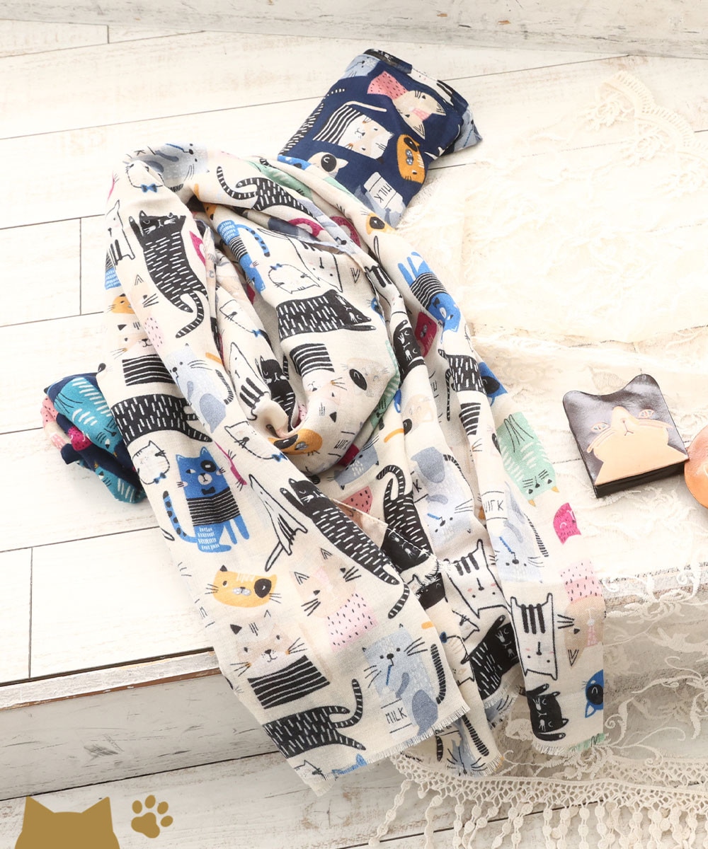 ねこ総柄ストール