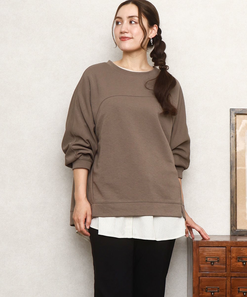 つづき袖の楽ちんな袖周りのゆったりシルエットですが切り替えや裾のスリットですっきり着られます。