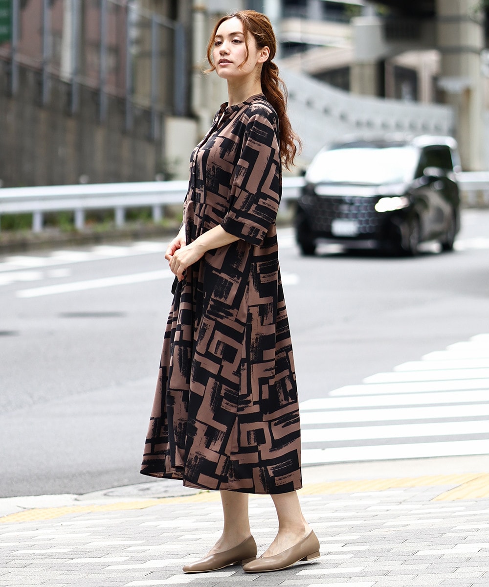 晩夏の空気感をまとったブロックプリントは、大人女性にぴったりなワンピースです。