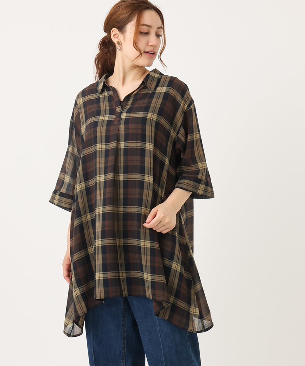 サラッとシャリみのある涼しいシアーチェックブラウス。
