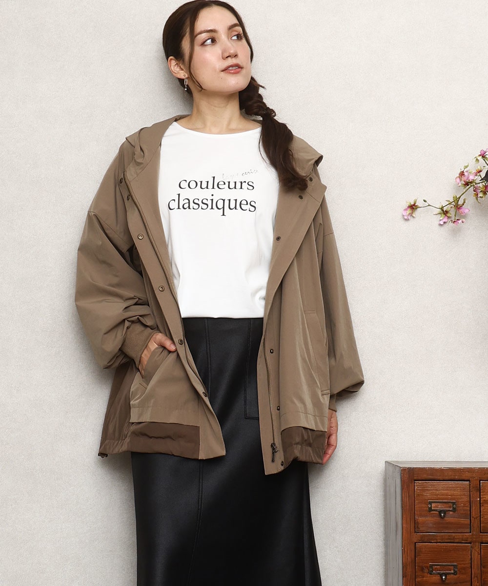 少しキレイ目な表面感の生地を使用しているので、大人のカジュアルスタイルにおすすめです。腰回りしっかり隠れるチュ。ニック丈なので、スリムパンツやストレートパンツと合わせて簡単スタイリングできます