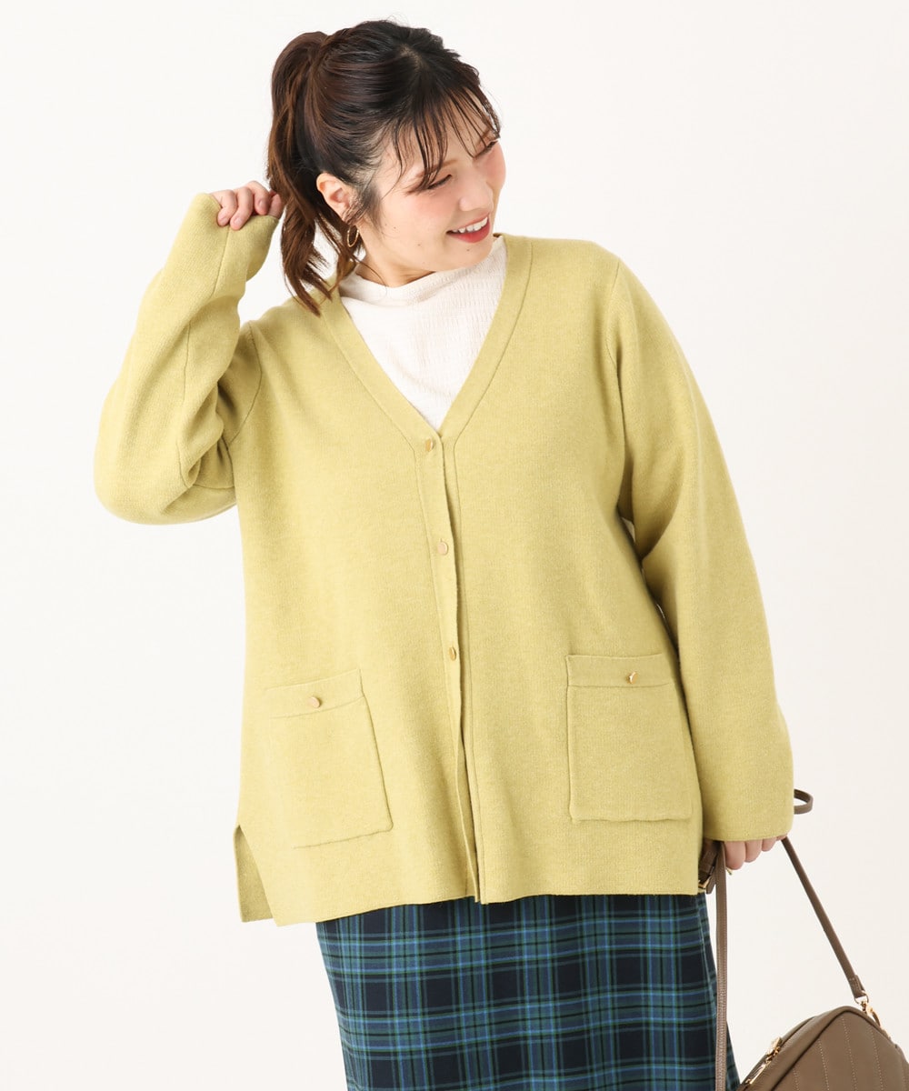 顔まわりをすっきり見せてくれるVネックラインのカーディガン。