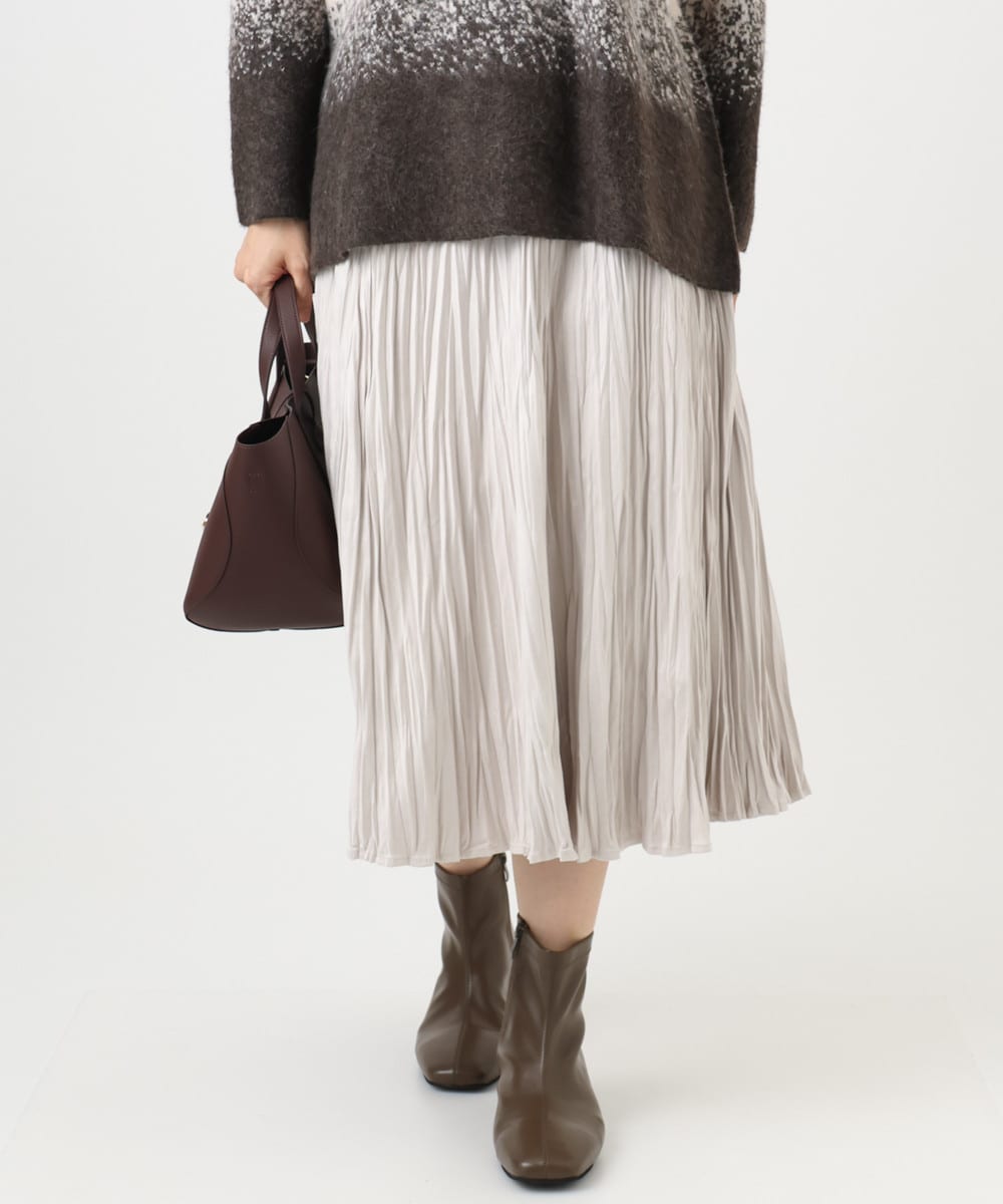 トレンドのスエード素材にランダムなワッシャープリーツ加工をかけたスカート。