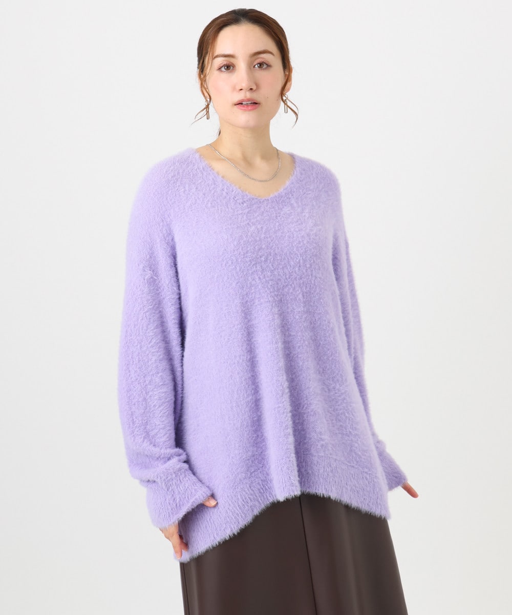 カジュアルみえする、毛足風に糸が出るあたたかなミックスヤーンを浅めのUネックのミニマルデザインで仕上げたトレンド感あるニット。