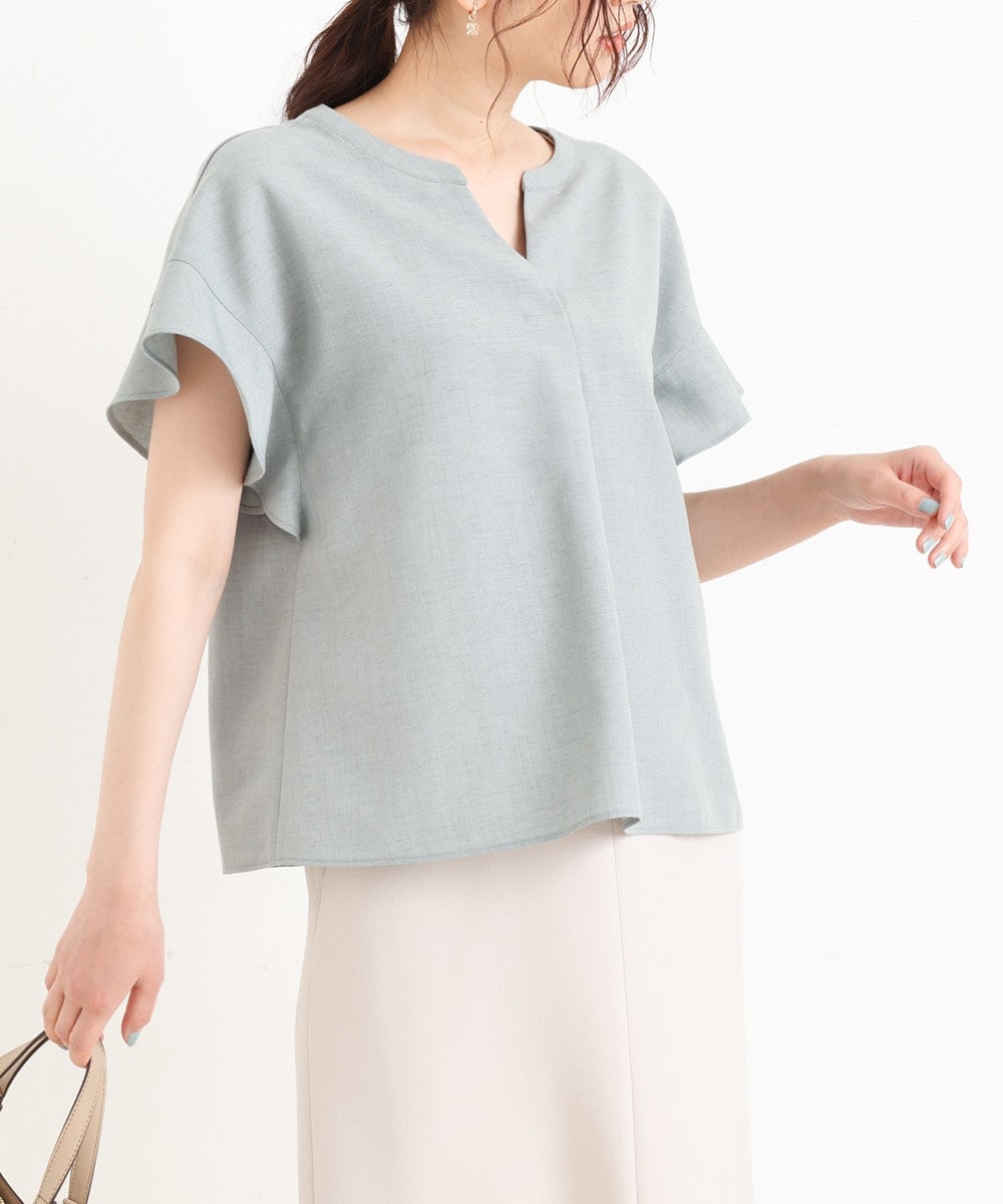 リネン混のさらりとした風合いが真夏まで着たいアイテム。きちんと見えしますが、