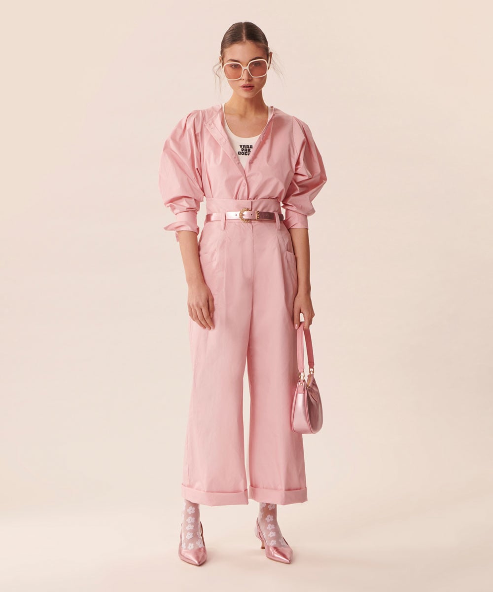 風通しの良さと軽い着心地がくせになる、ポプリンアイテム。非常にシンプルなデザインなので、小物でアレンジを加えるとがらっと雰囲気が変わります。セットアップはもちろん単品での着回し力も高いので、色違いで揃えるのもおすすめ。