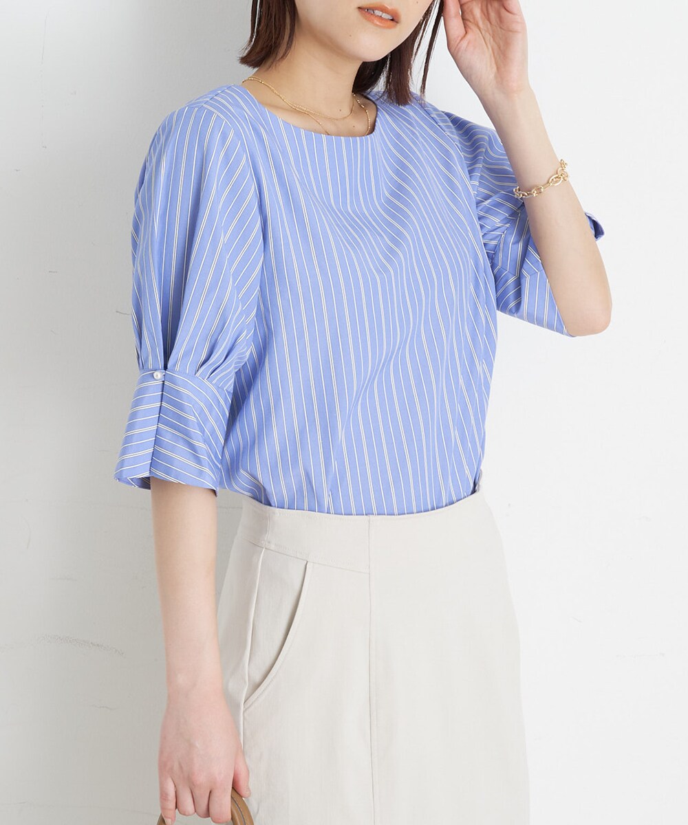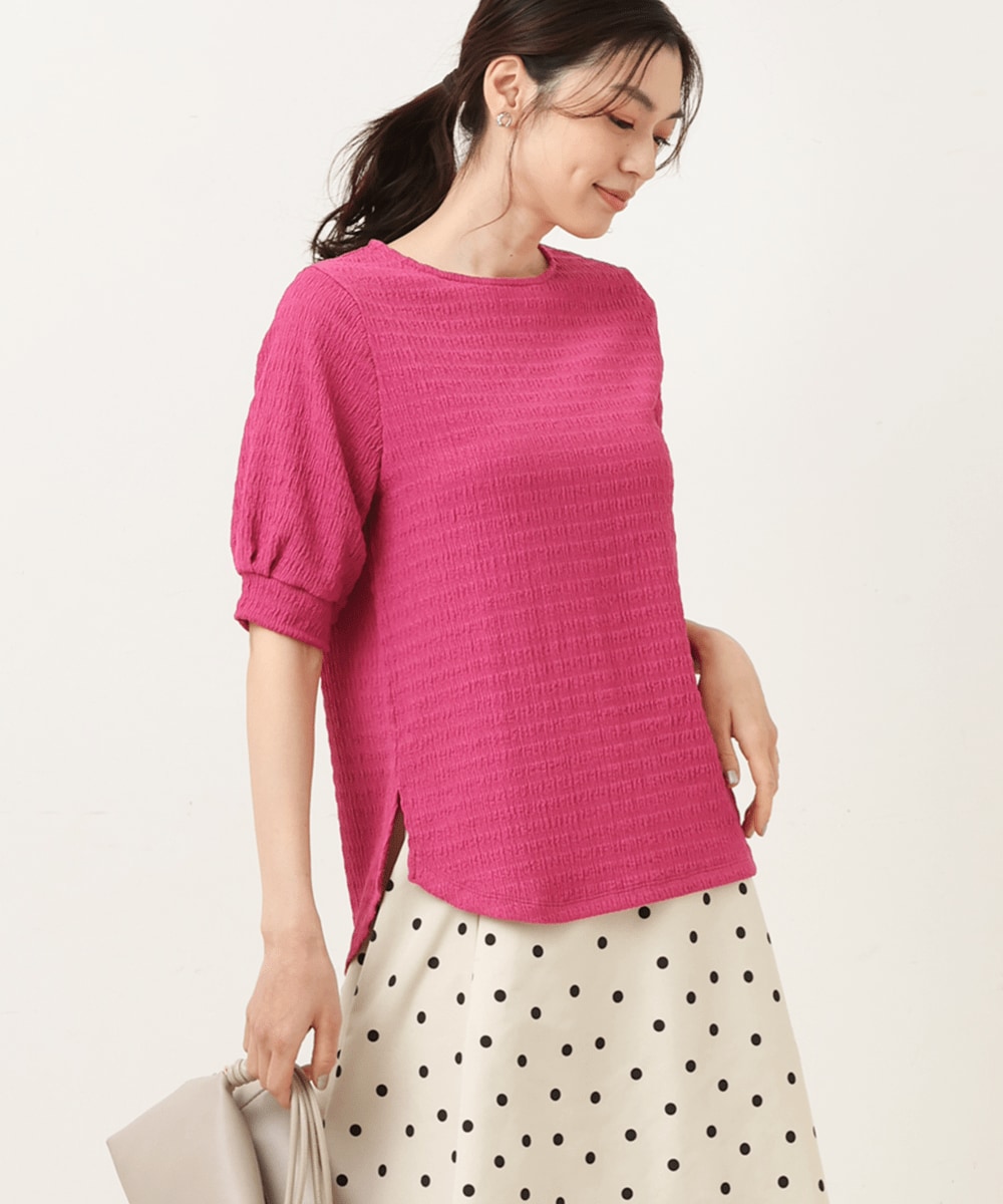 気になる二の腕もカバー出来るボリュームスリーブは、5分袖なので春~秋まで長く重宝します。