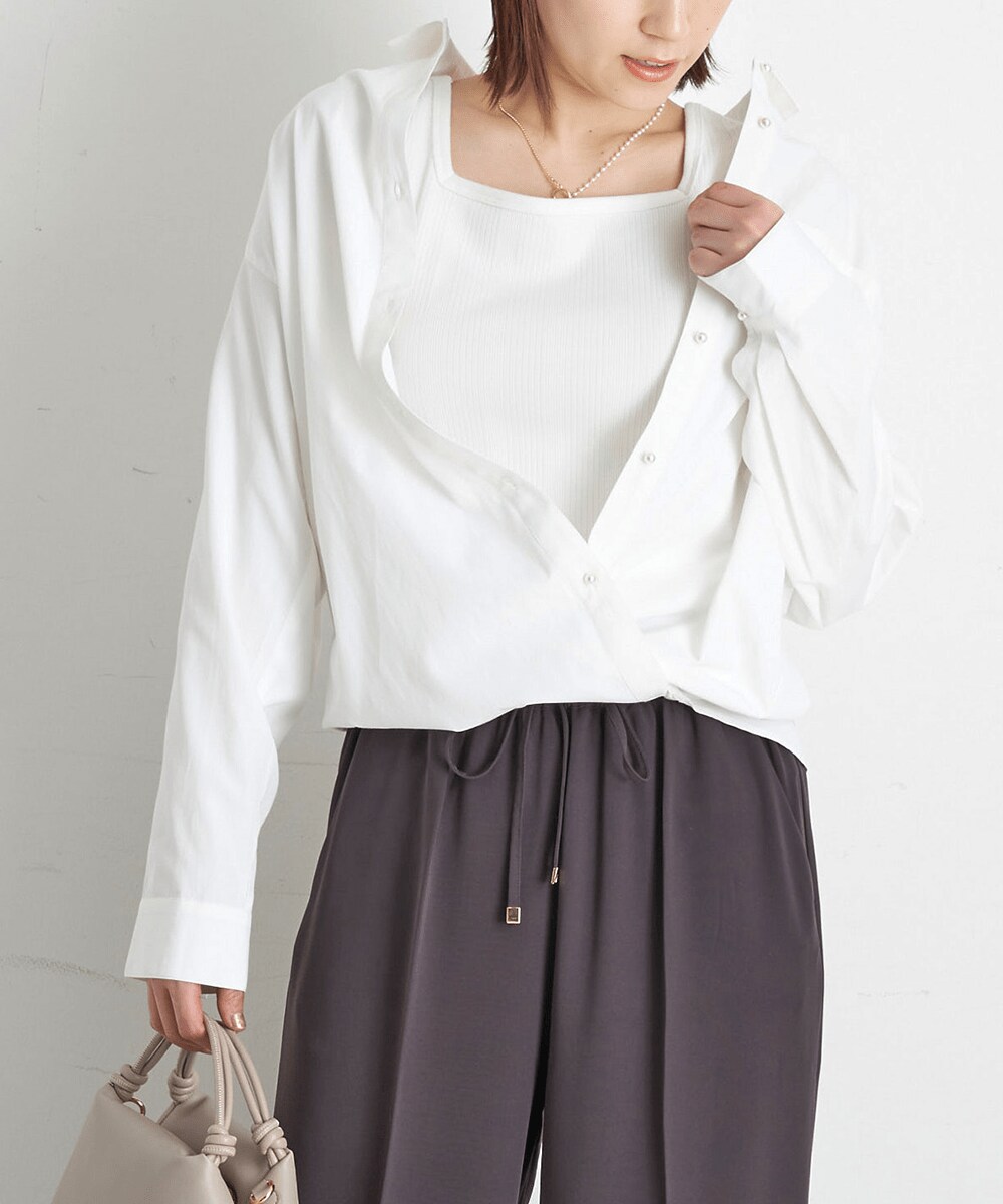 季節の変わり目にまずは持っておきたいベーシックシャツは、パール調ボタンで程よい抜け感と女性らしさをプラスし大人が品良く着られるシャツに仕上げました。