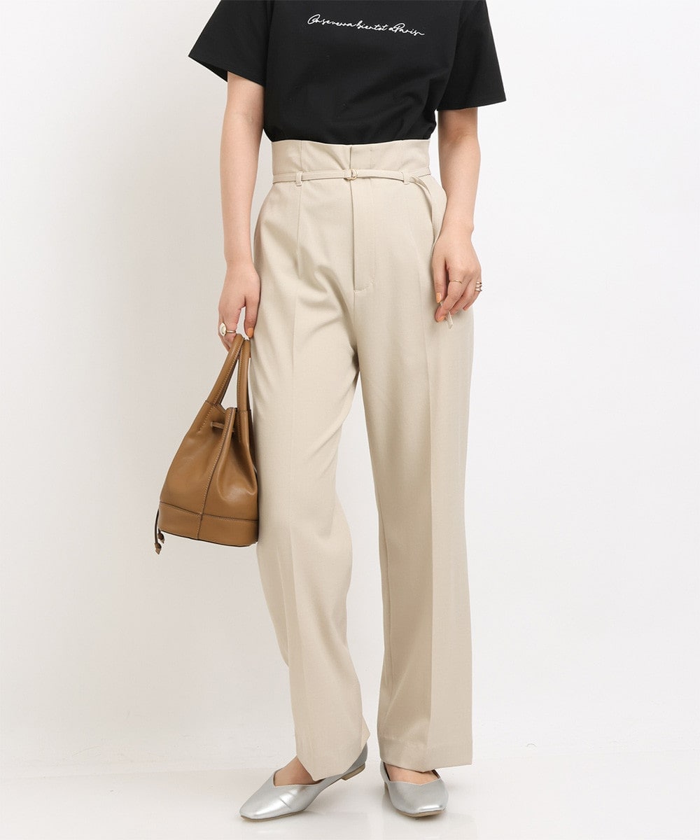 ハイウエストデザインが美脚見えする、ベルト付きストレートパンツ。