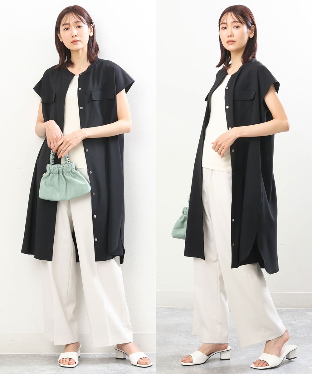 トレンドのジレスタイルは通勤スタイルにだって馴染みます。釦をすべて閉じればチュニックとしても着回せるのも嬉しい。