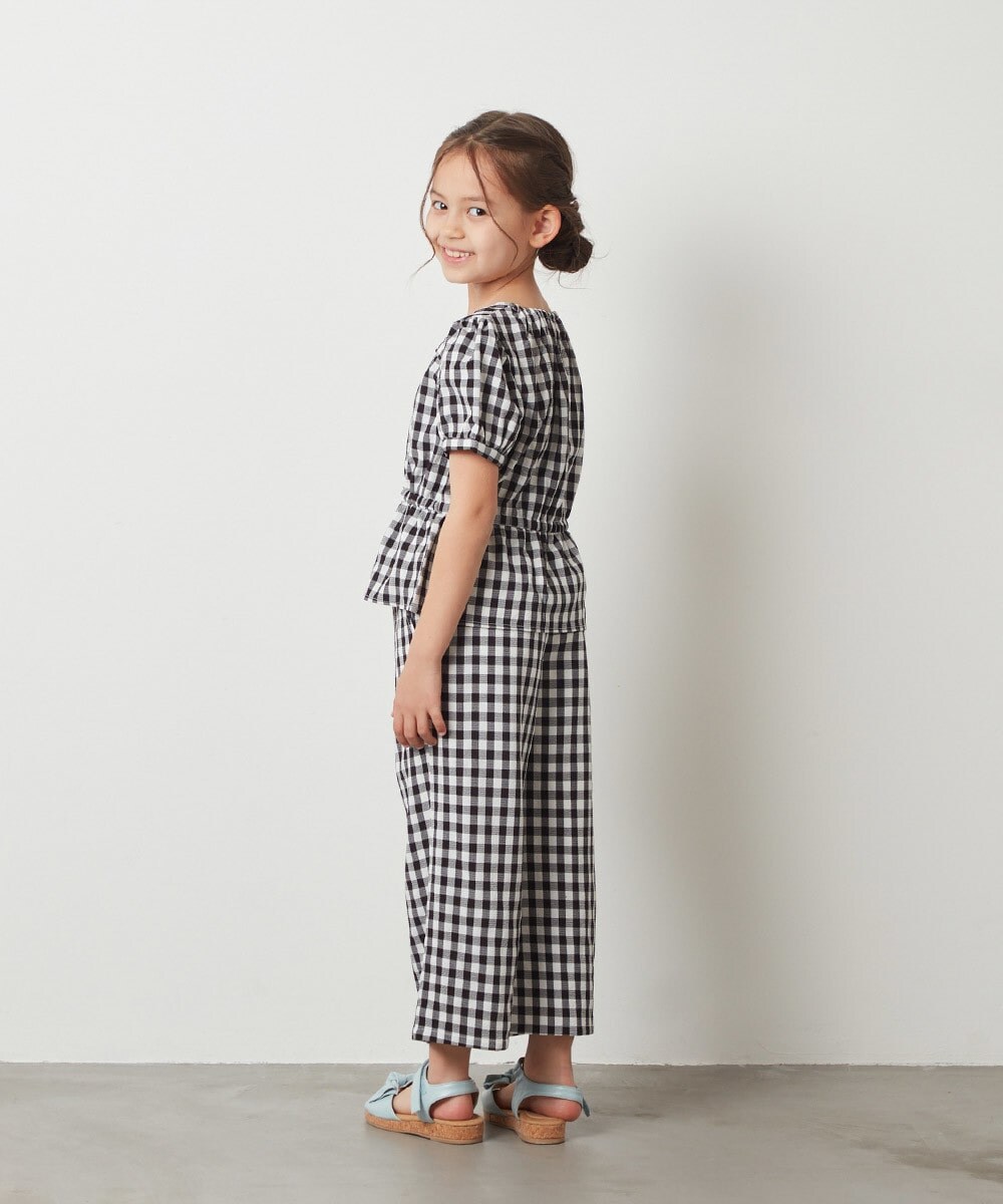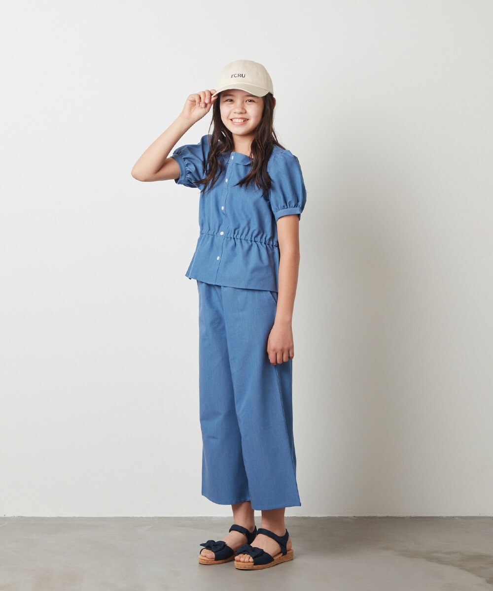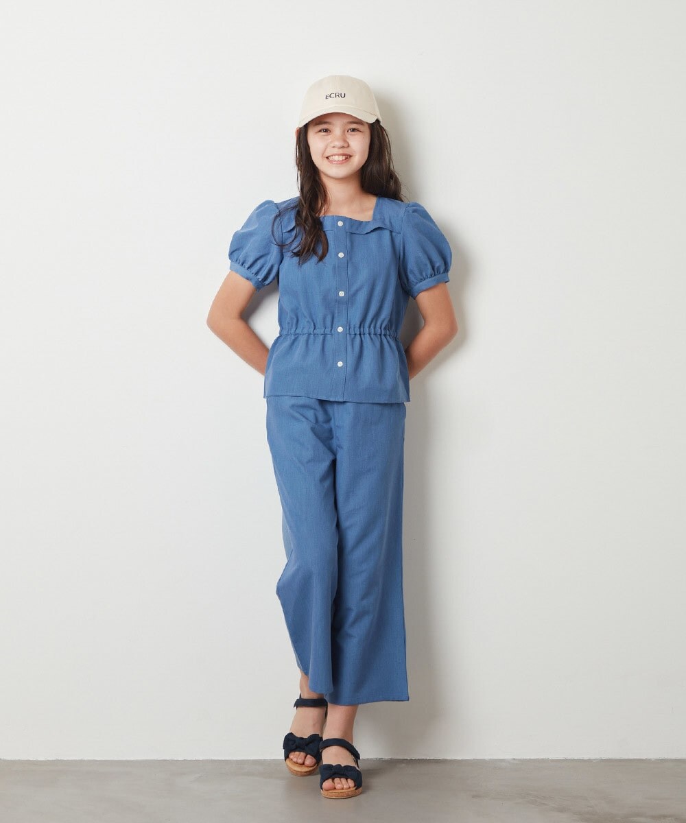 パフスリーブとペプラムシルエットが女の子らしくかわいい印象ですが、パンツとの相性も抜群◎