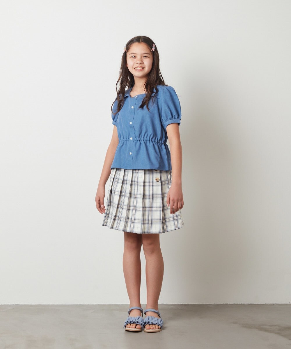 きちんと感をプラスしてくれる襟に、女の子らしいパフスリーブが引き立つトップス。