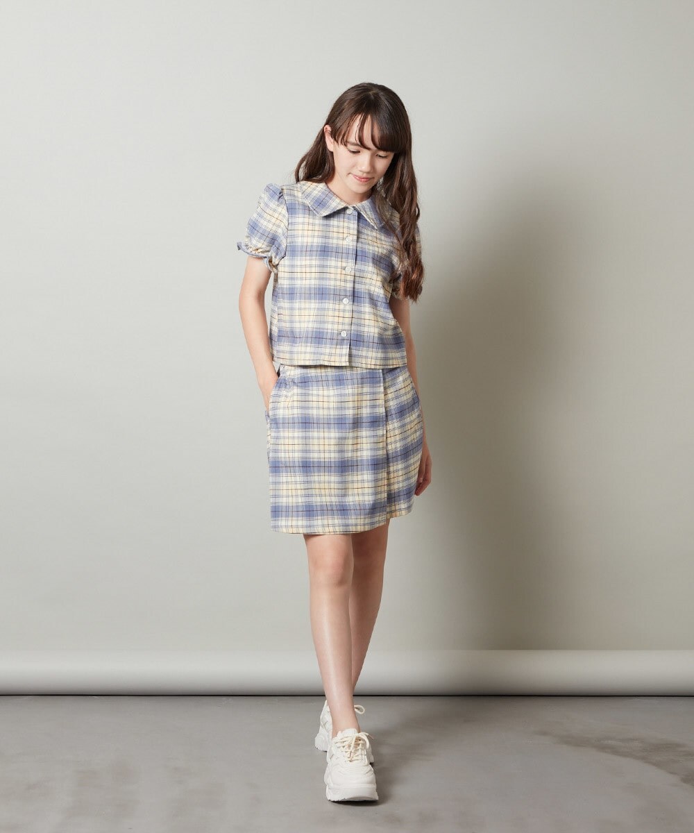 チェック柄がアクセントになるので、シンプルなTシャツなどと合わせるのがおすすめ!