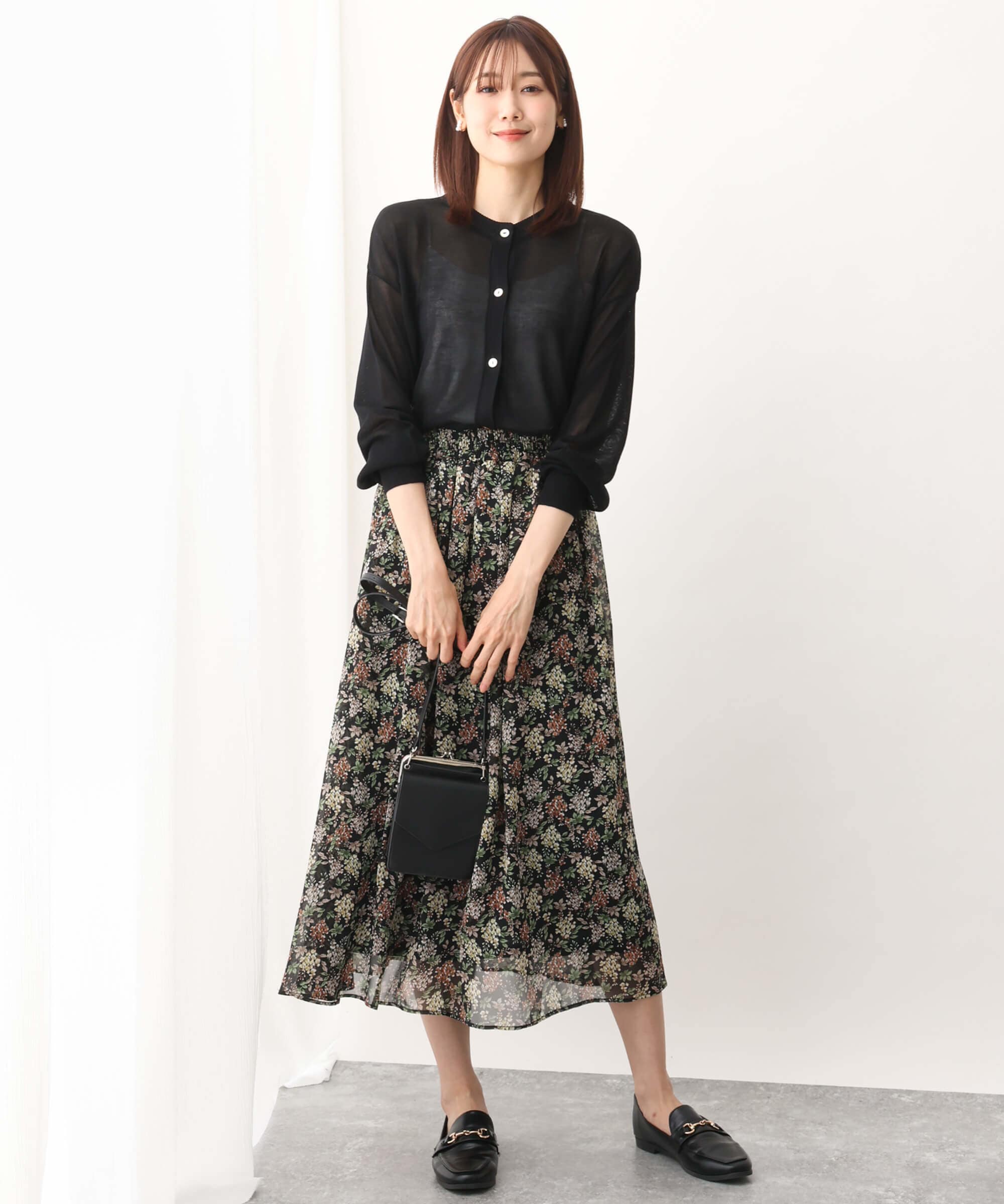 少し透け感のあるカーディガンはオフィスにも安心な一枚。