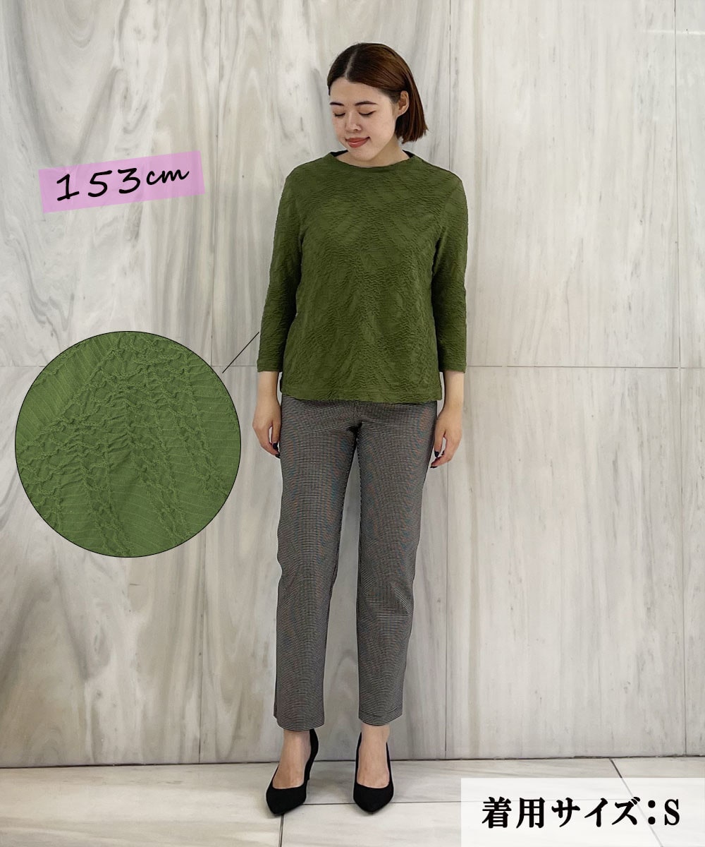 ほどよくゆとりがあり、ヒップラインが隠れる安心感のある着丈です。