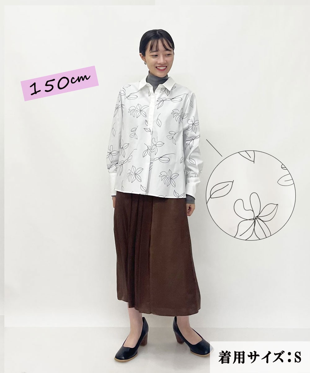 シックな色合いでありながらも、立体感のある手触りで表情のあるシャツブラウス。