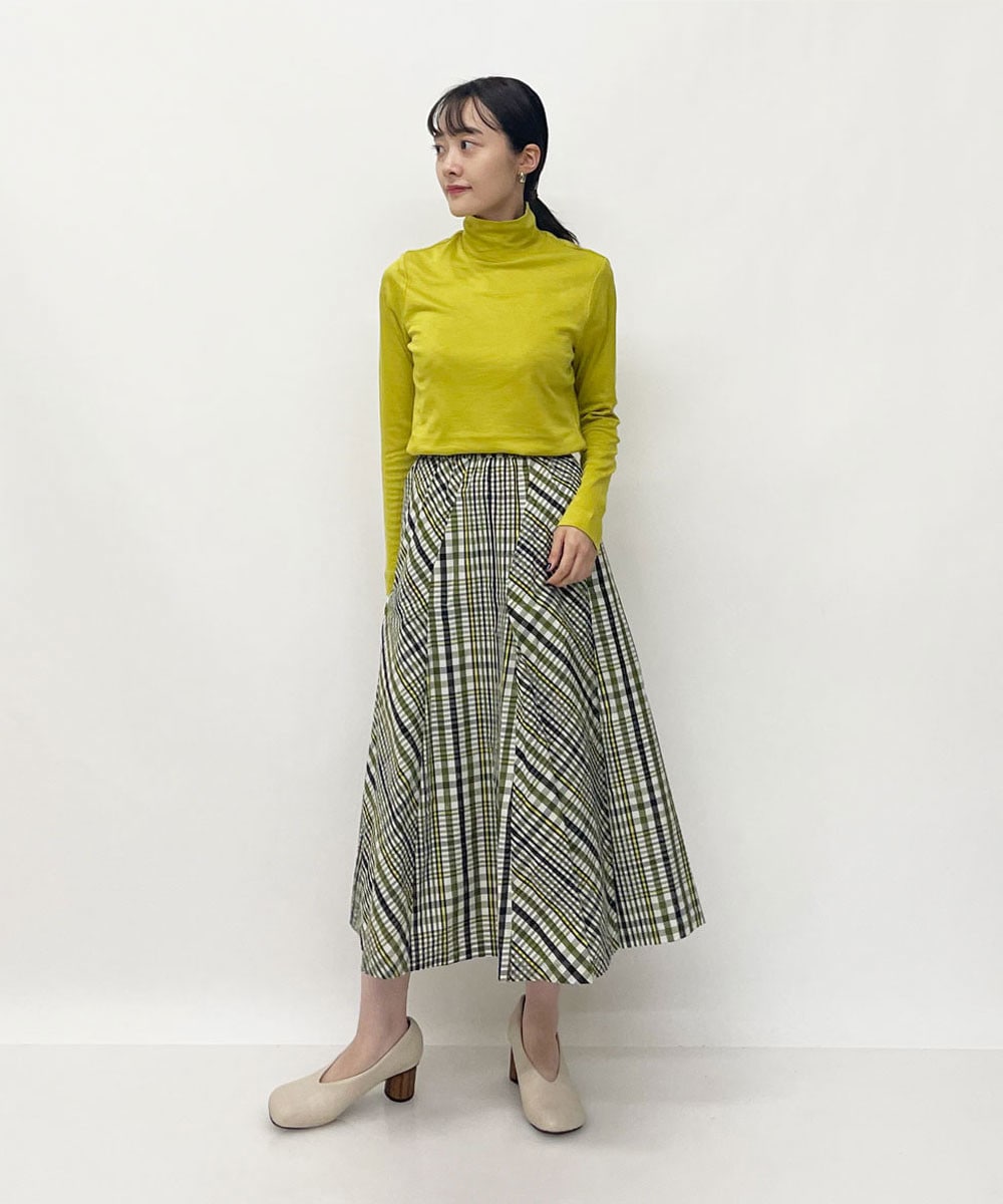 チェック柄の中にもイエローの配色があるのでハイネックとの組み合わせも相性抜群です。