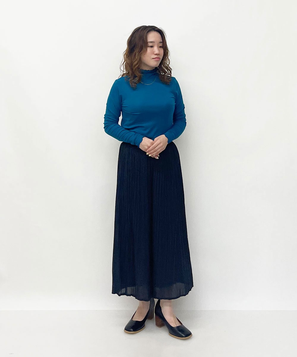 一枚あれば、インナーとしても使いやすく秋のレイヤードスタイルも楽しめます。