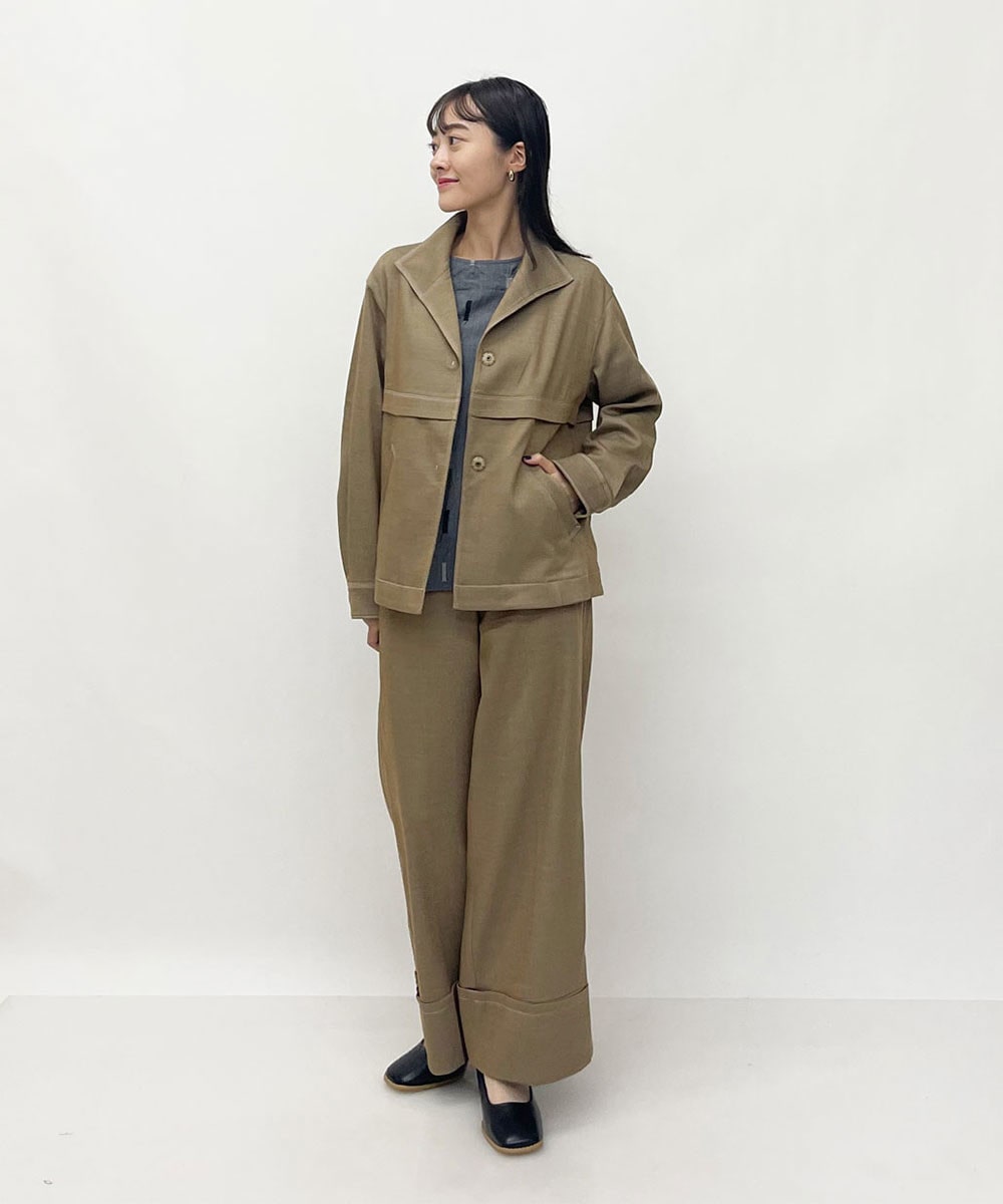 一枚着としてはもちろん、少し肌寒くなってきたらベストやジレを重ねたり、ハイネックインナーを中に合わせたりと、一枚でいろいろな着こなしを楽しめる一枚です。